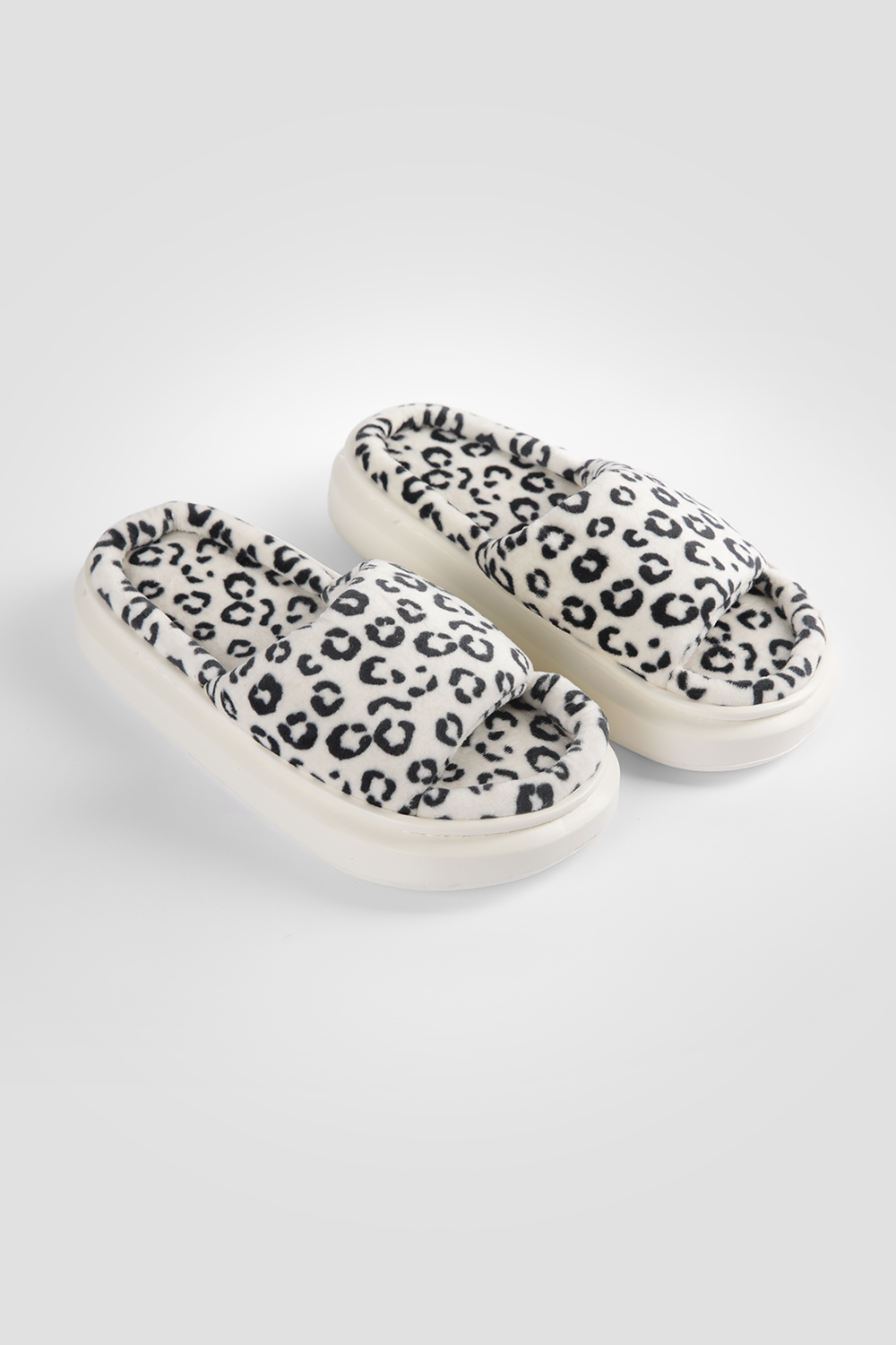 נעלי בית בגזרת כפכפים לנשים מבית המותג DELTA בעלי רצועה עליונה רחבה מבד קטיפתי ומפנק וסוליה עבה במוטיב מנומר.