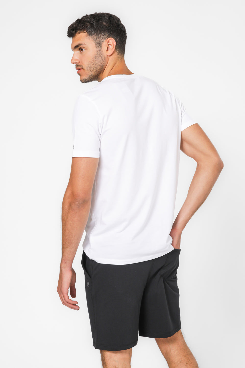 חולצת טי עם מפתח עגול בצוואר, ומכנסיים קצרים עם גומי במותניים, כיסים בצדדים ושרוכי קשירה.