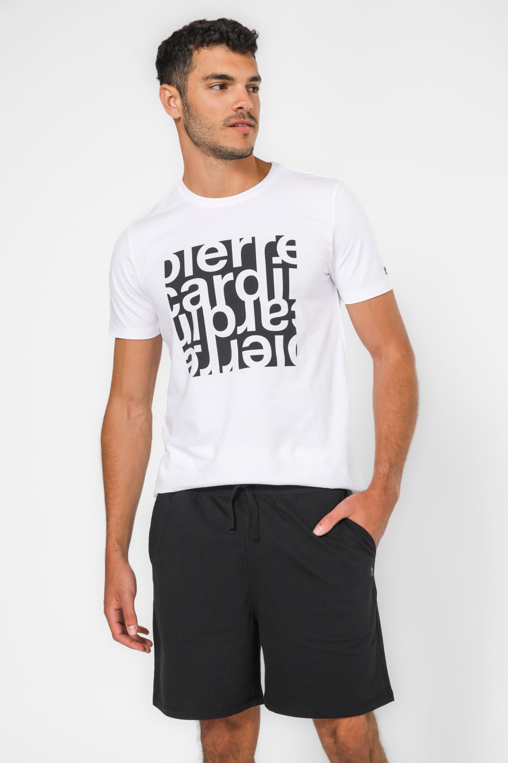 סט מבד פרנץ’ טרי נעים עם הדפס הלוגו של PIERRE CARDIN.