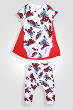 סט פיג’מה עם גלימה לתינוקות בנים SPIDERMAN בצבע לבן ואדום