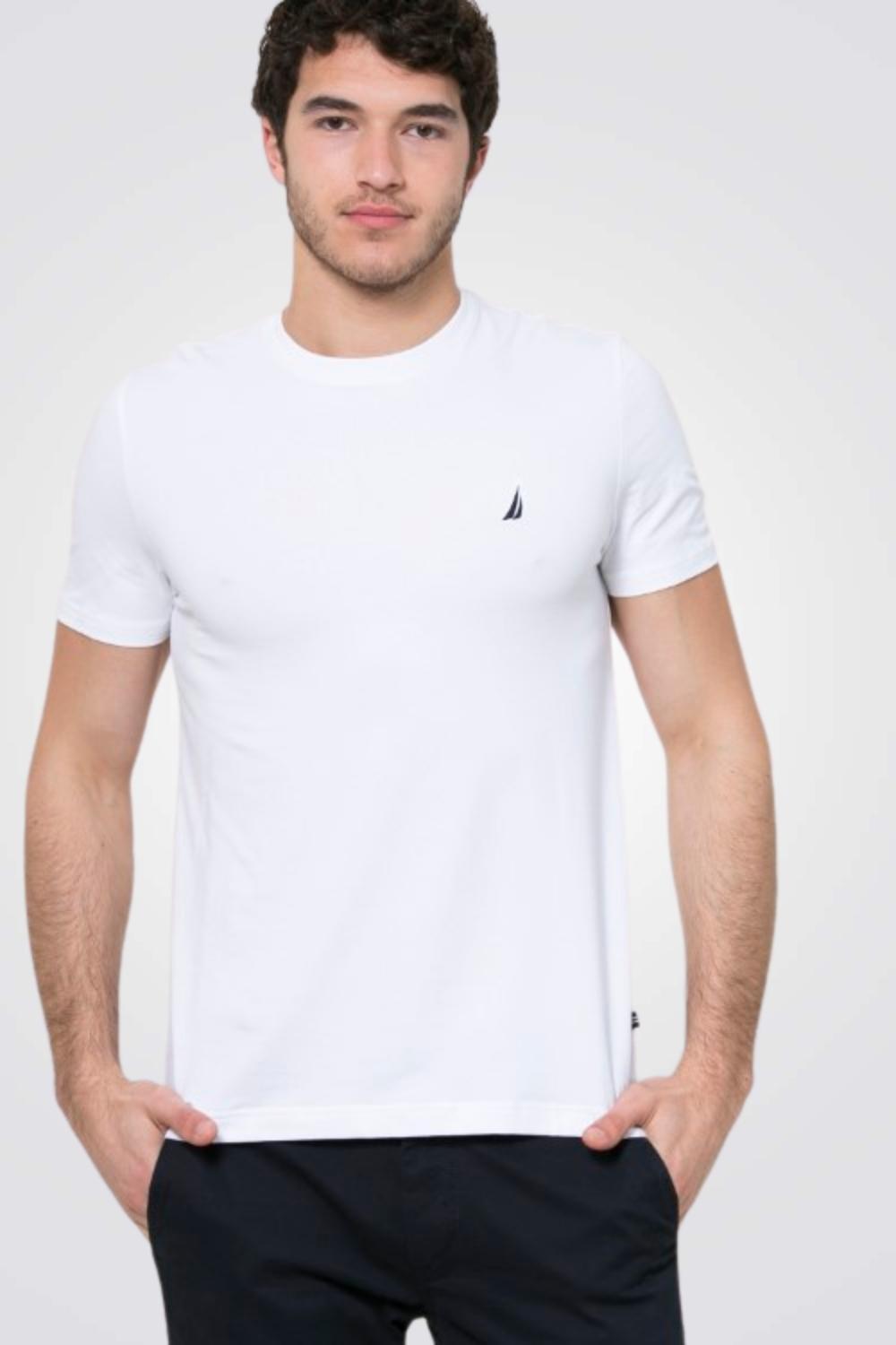 חולצת טריקו בצבע לבן WHITE מבד טריקו רך וקליל, של המותג נאוטיקה NAUTICA. חולצת טריקו שרוול קצר עם צווארון עגול, לוגו נאוטיקה רקום בשחור.