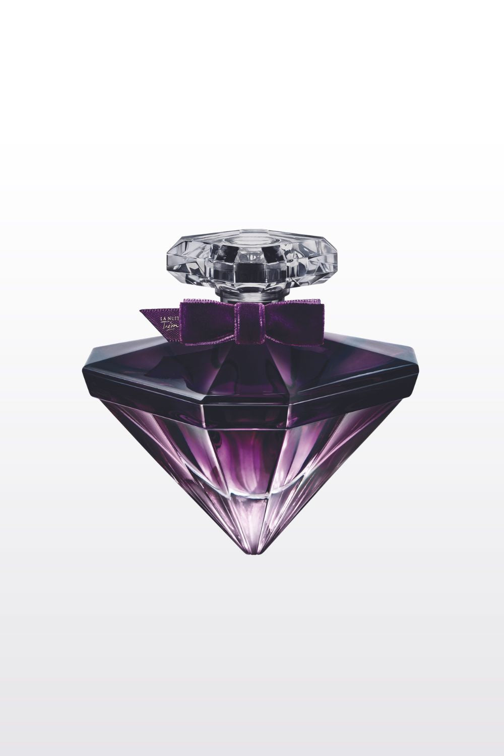 הבקבוק בעיצוב רומנטי ויוקרתי של יהלום שחור עם גווני סגול קטיפתי.