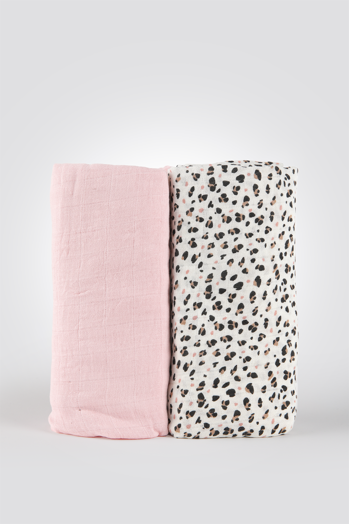 שני חיתולי טטרה נעימים במיוחד מבית המותג DELTA בצבעים ורוד ומנומר.
