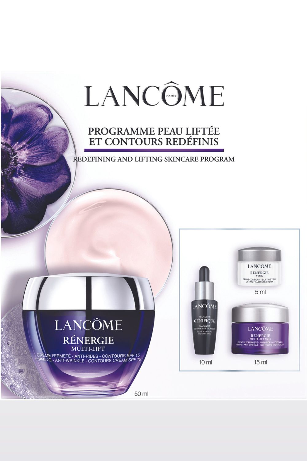 בנוסף לקרם בגודל מלא (50 מ"ל), מכיל המארז גם: רנרג'י קרם לילה (15 מ"ל), סרום ג'ניפיק לפנים (10 מ"ל) וקרם עיניים רנרג'י (5 מ"ל)