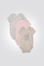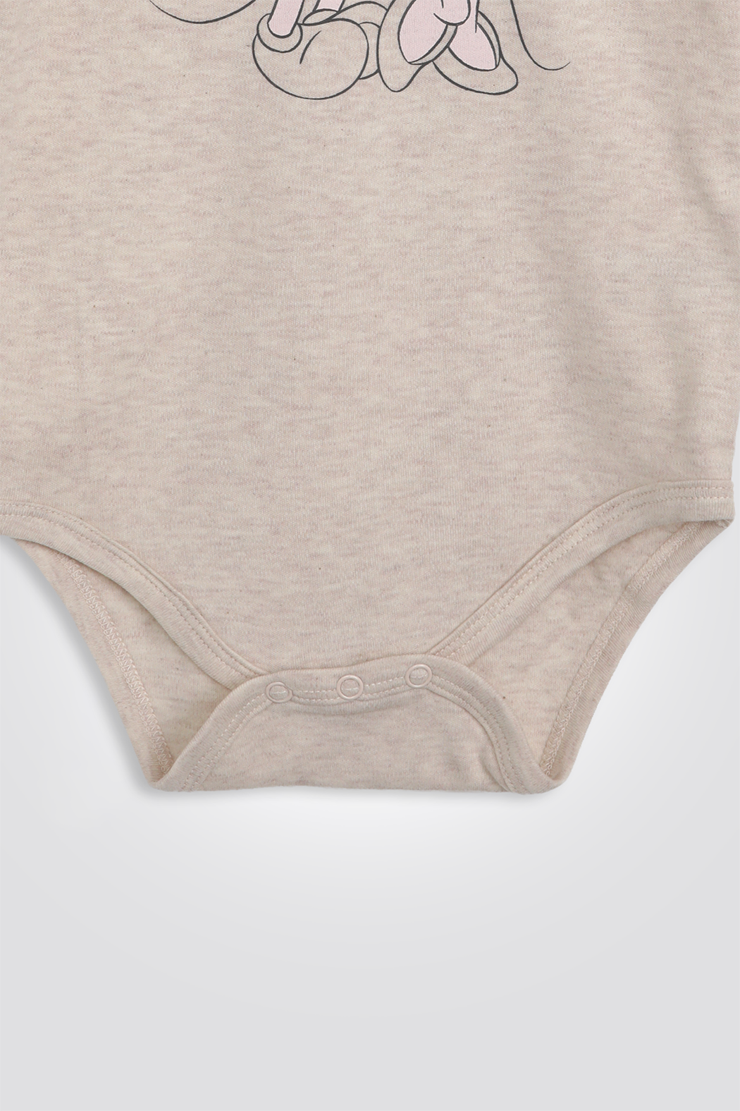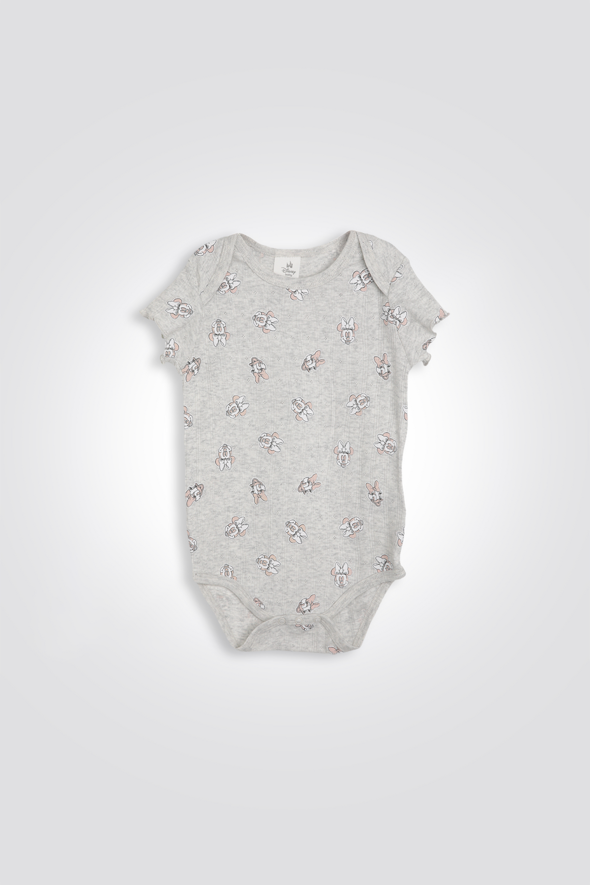 מארז בגדי גוף לתינוקות מבית המותג DELTA העשוי מבד בטקסטורת פוינטל עם הדפס מתוק של מיני מאוס, מפתח צוואר עגול, שרוולים קצרים וסוגרי תיקתק בתחתית.