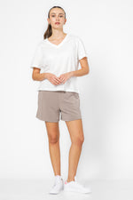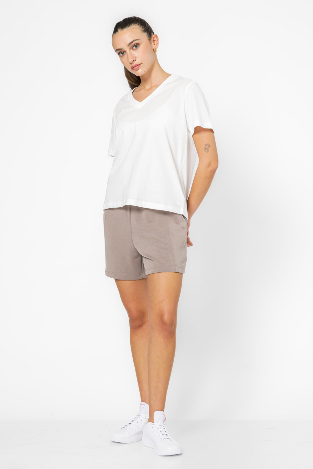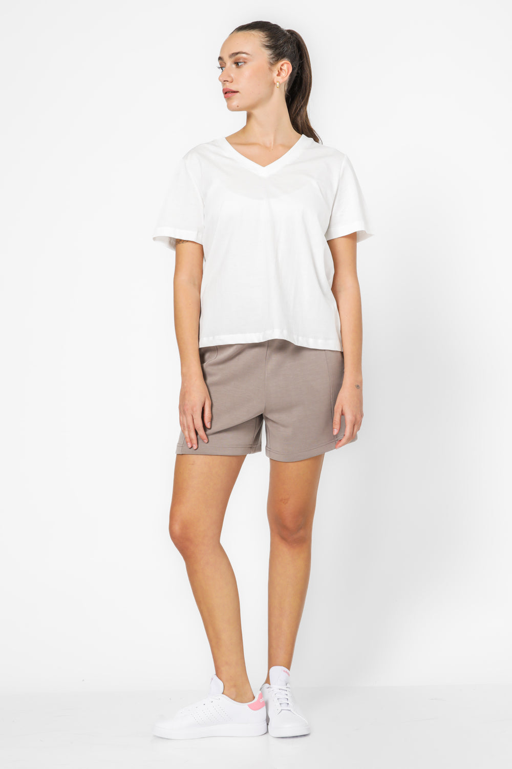 מכנסיים קצרים לנשים מבית המותג DELTA בגזרה נינוחה מעל הברך בשילוב בד מודל קליל ונעים, עם גומי במותניים, שרוכי קשירה וכיסים לנוחות מירבית.