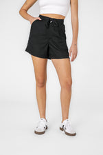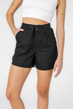 מכנסיים קצרים לנשים מבית המותג DELTA העשויים מבד אריג רך ונעים, בגזרה נינוחה עם סגירת קרס ורוכסן, שרוכי קשירה וכיסים בצדדים.