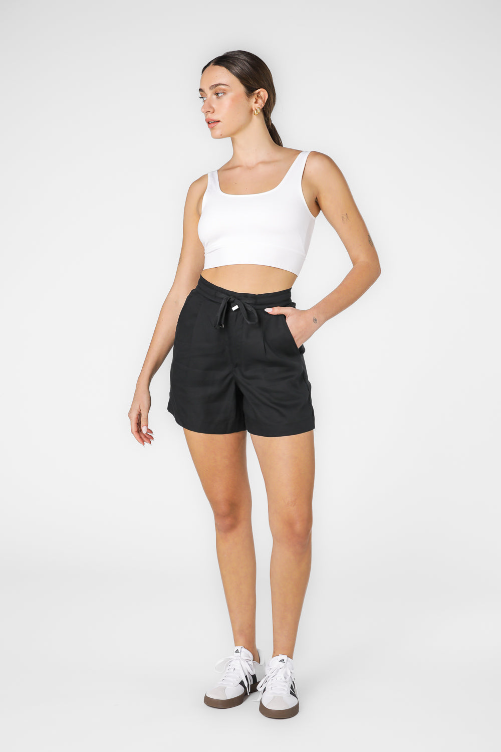 מכנסיים קצרים במראה מחוייט בצבע שחור