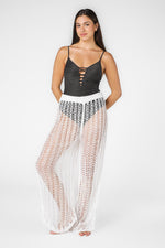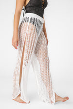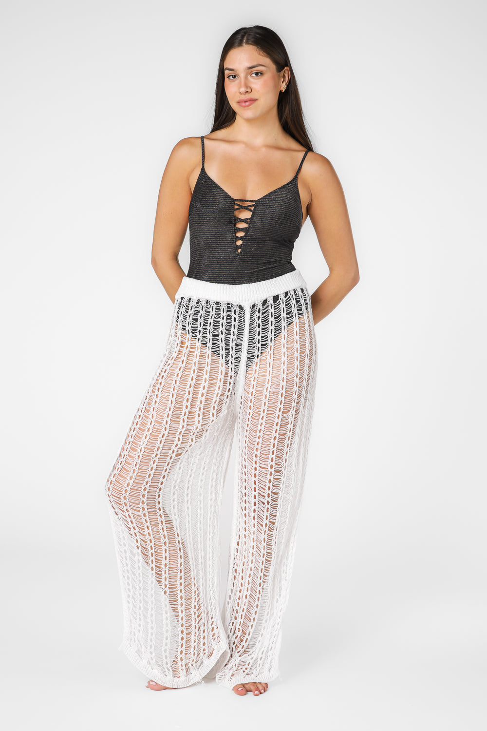 מכנסי חוף סרוגים ארוכים בצבע לבן
