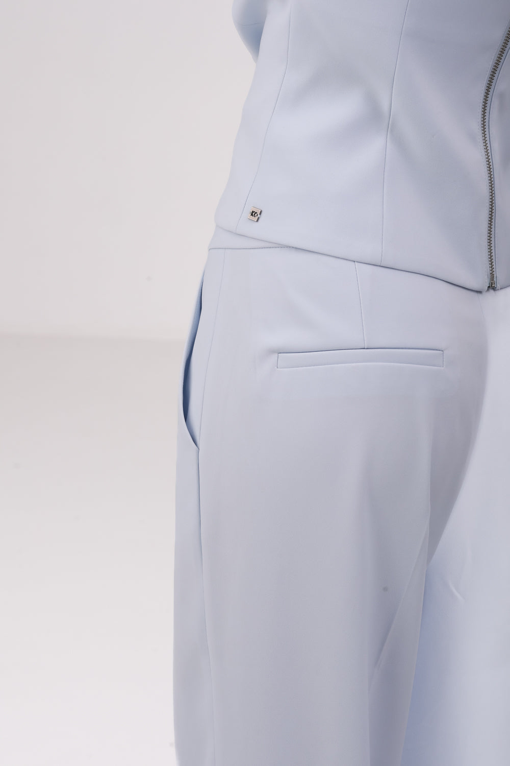 מכנסיים ארוכים לנשים מבית המותג KENNETH COLE, במראה מחויט בצבע כחול בהיר, בגזרה מתרחבת, עם 4 כיסים, סגירת קרס ורוכסן.