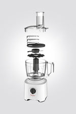 מעבד מזון קל ונוח לשימוש כולל 5 אביזרים המאפשרים מגוון רחב של פעולות: חיתוך, קיצוץ, גירור ופריסה, ערבול ועוד.