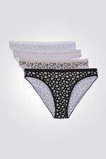 מארז תחתונים העשויים מבד כותנה נעים, בגזרת היי לג ובהדפס מנומר