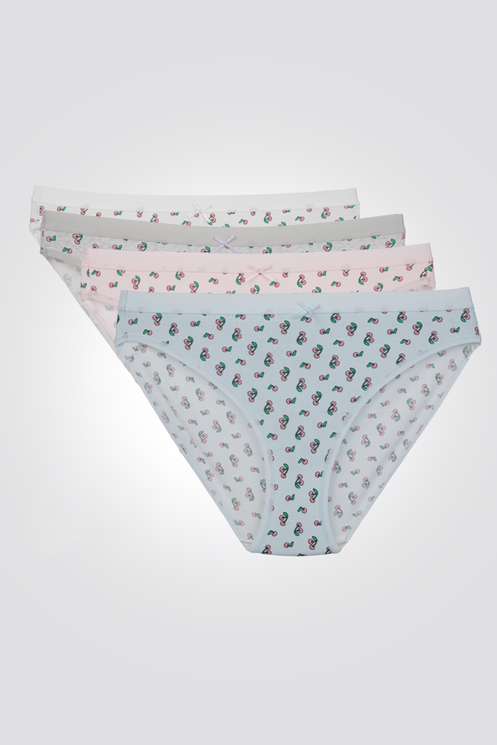 מארז רביעיית תחתוני מיני בהדפס דובדבנים לבן