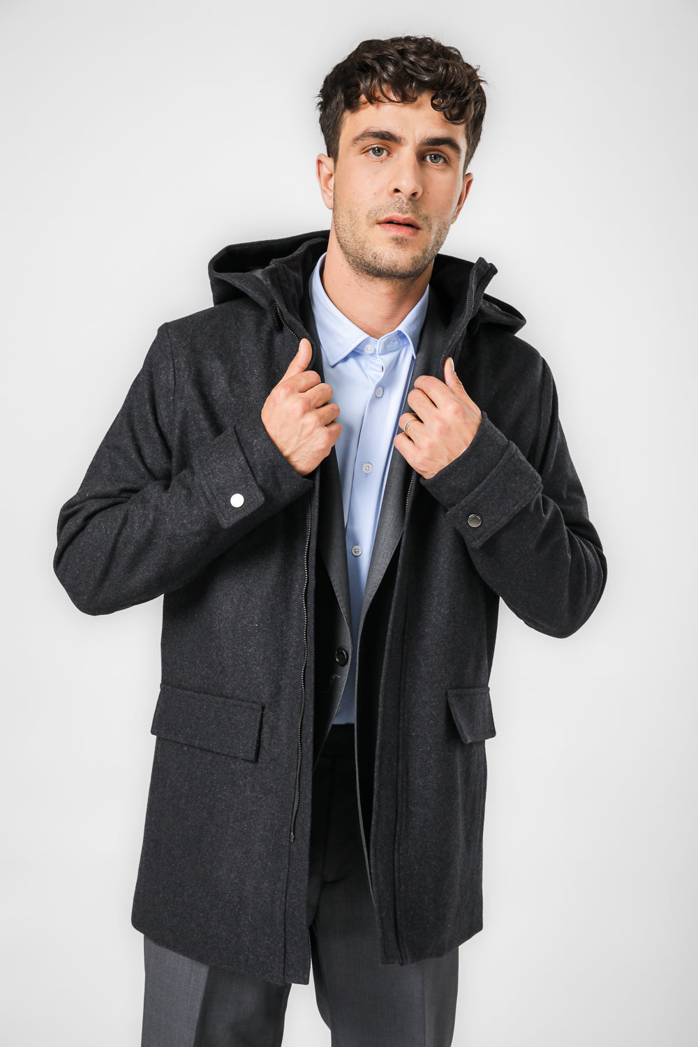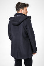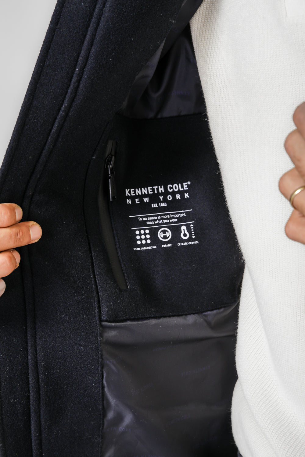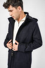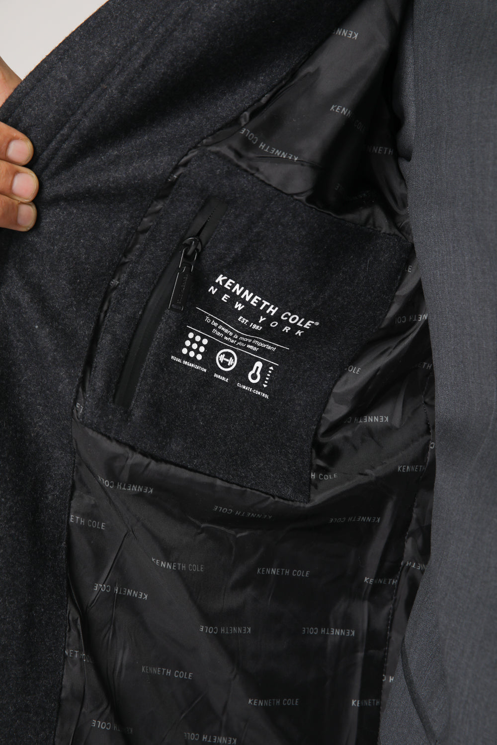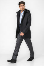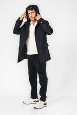 מעיל פארקה לגברים מבית המותג KENNETH COLE עם שרוולים ארוכים בשילוב רצועת כפתור, כיסים קדמיים ופנימיים, כובע קפוצ'ון וסגירת רוכסן.