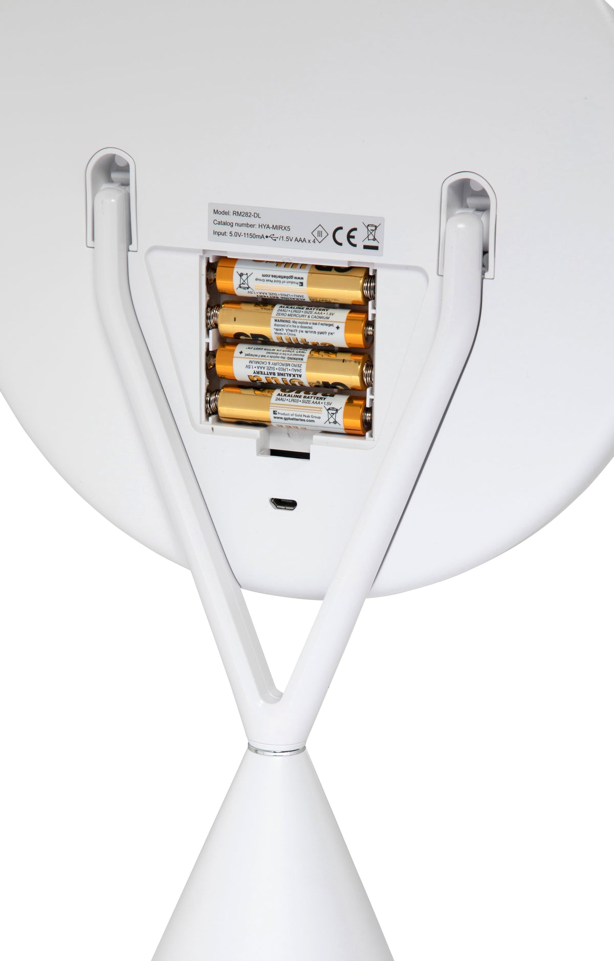 תאורת המראה מופעלת באמצעות 4 סוללות ) לא כלולות ) AAA , או כבל MICRO USB.