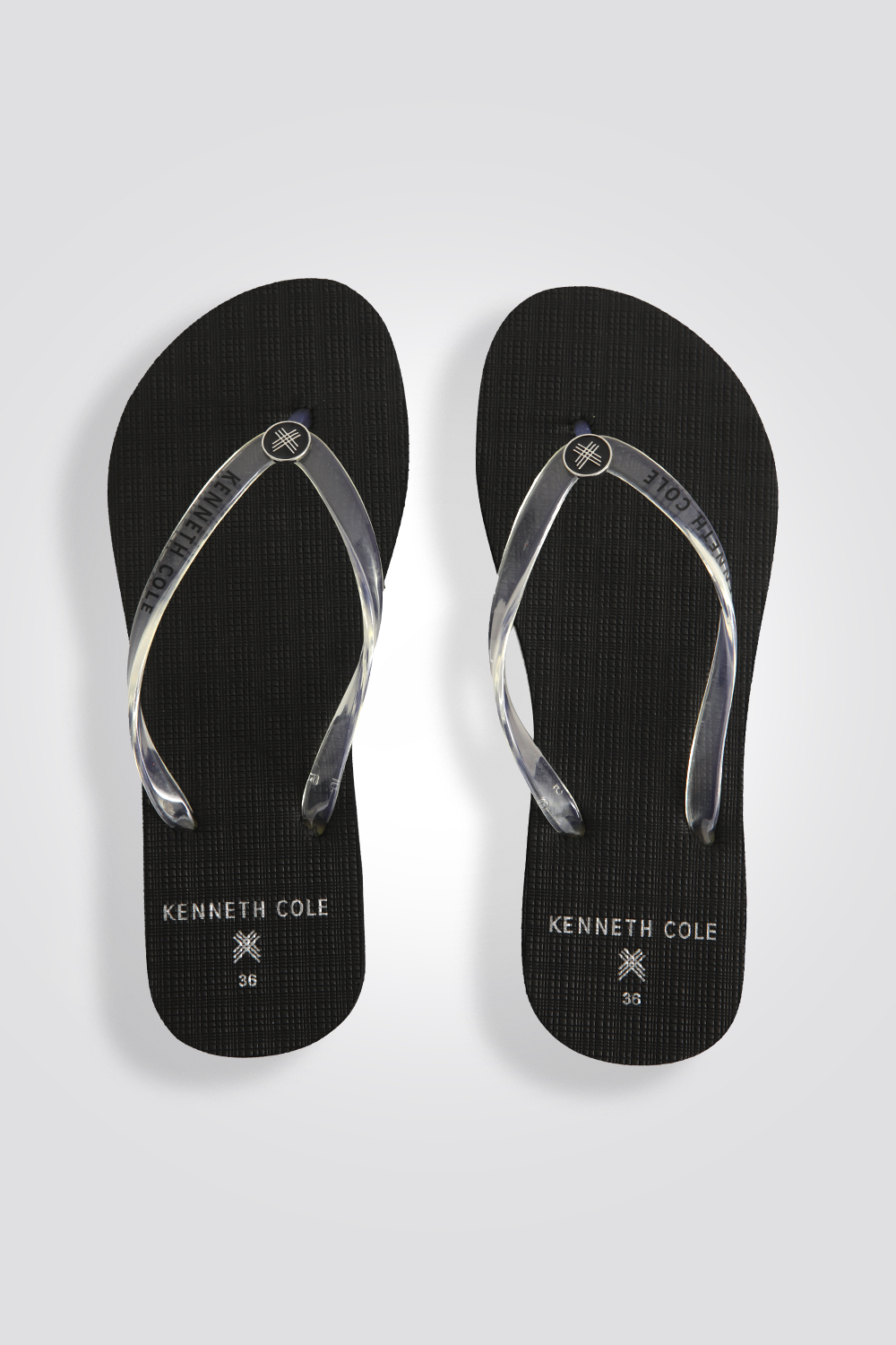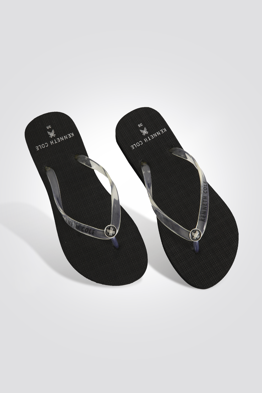 כפכף אצבע לנשים מבית המותג KENNETH COLE עם רצועות שקופות, בעיצוב אופנתי ונוח.