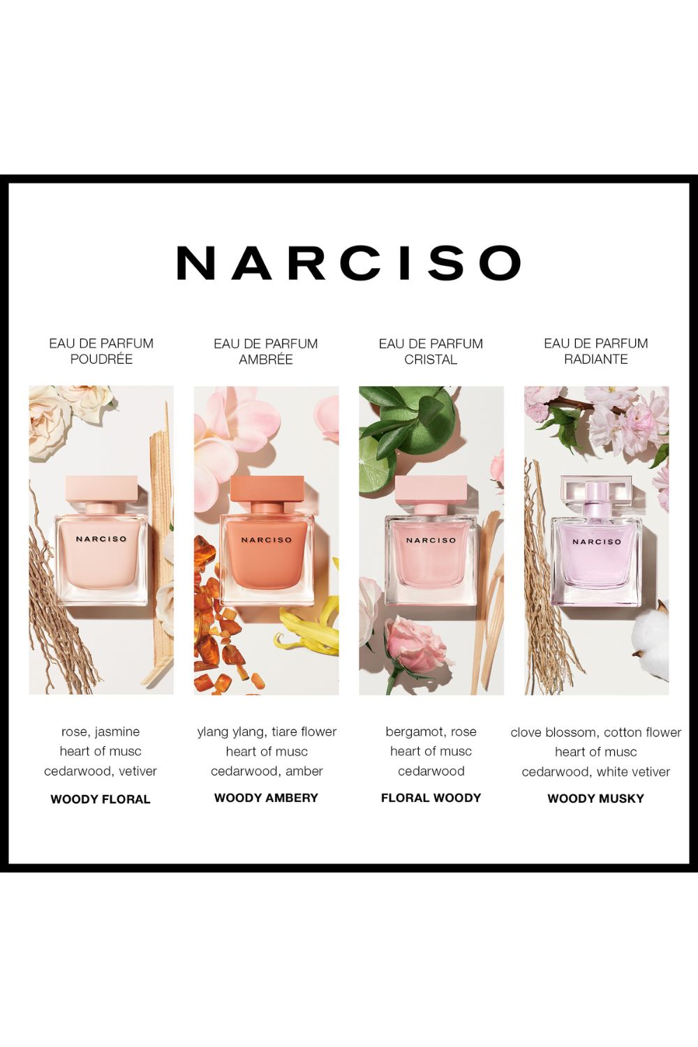 המעצב נרסיסו רודריגז יוצר בעזרת הליין 'NARCISO' קבוצת בשמים שמשחקת עם קצוות הפיתוי והמשיכה. הבושם NARCISO eau de parfum poudrée: ניחוח נשי שמגדיש את היופי של העונדת אותו מבפנים, ומשדר משיכה ומסתורין.