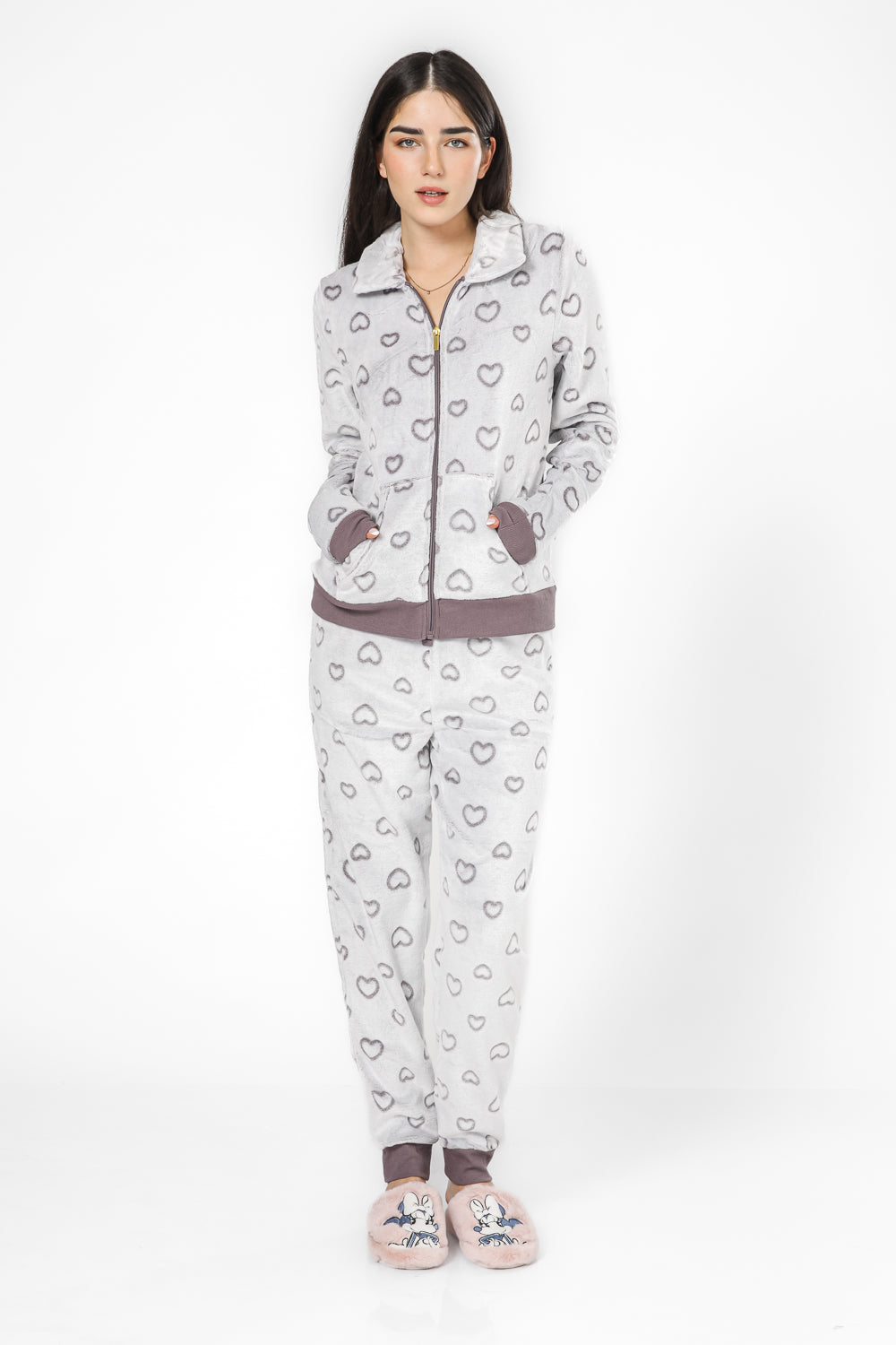 סט פיג'מה פלאפי לבבות עם רוכסן