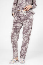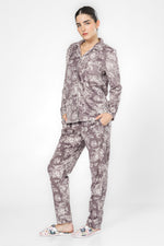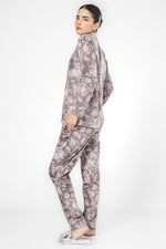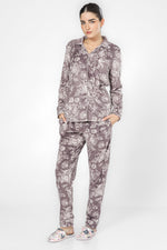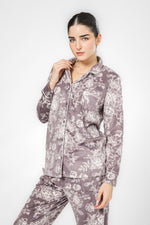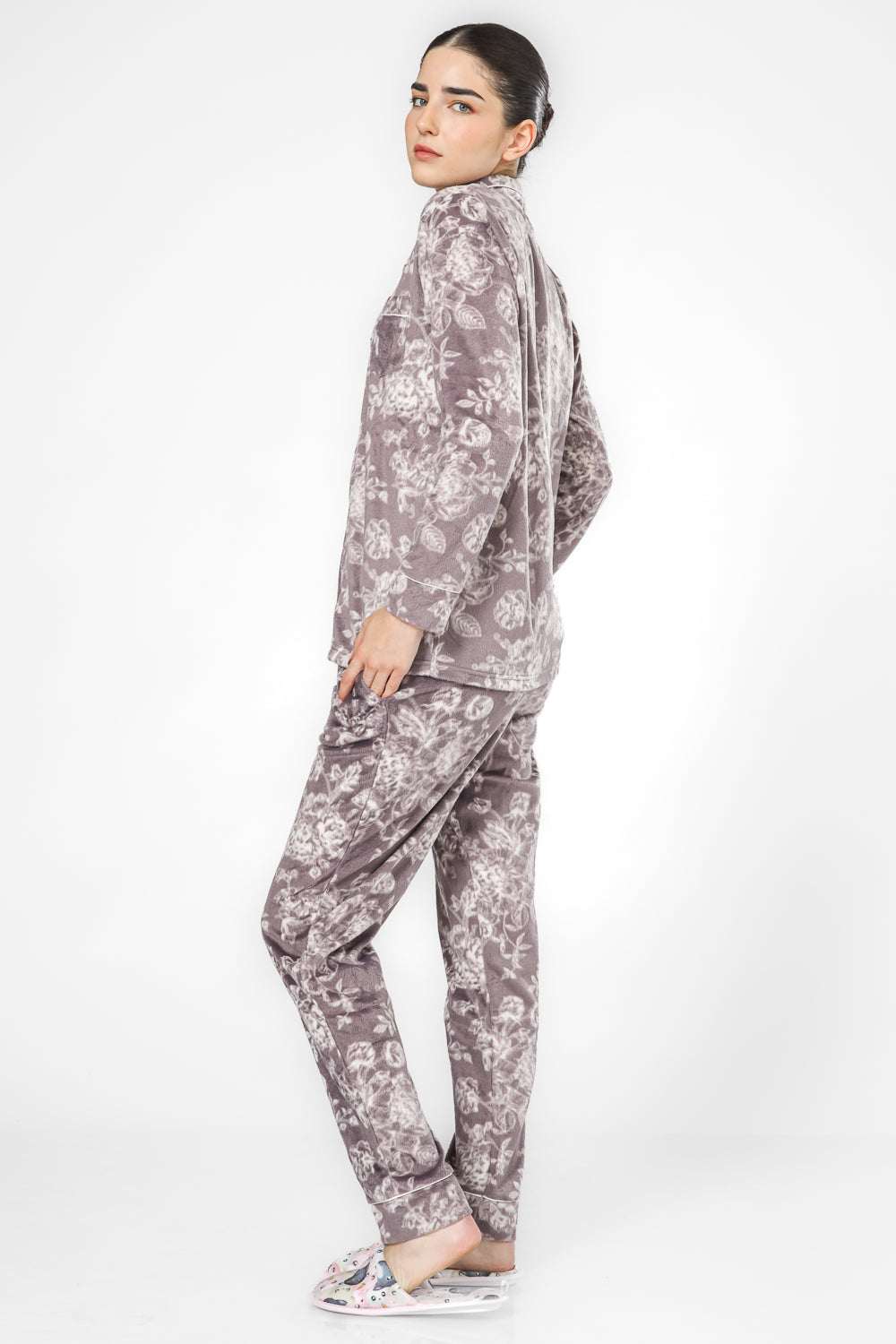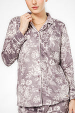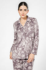 חולצה מכופתרת עם צווארון עגול ושרוולים ארוכים, ומכנסיים ארוכים תואמים עם שרוכי קשירה