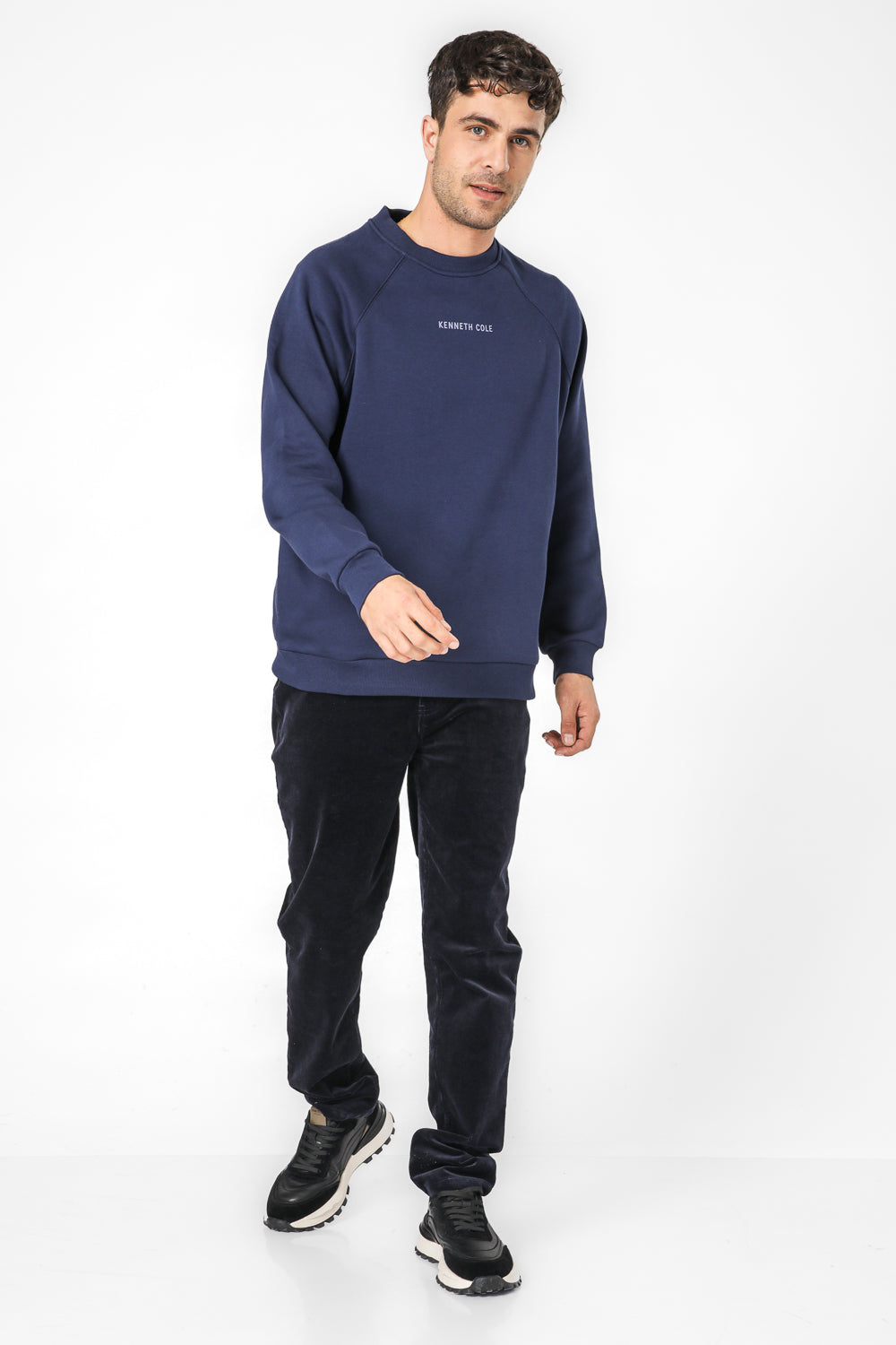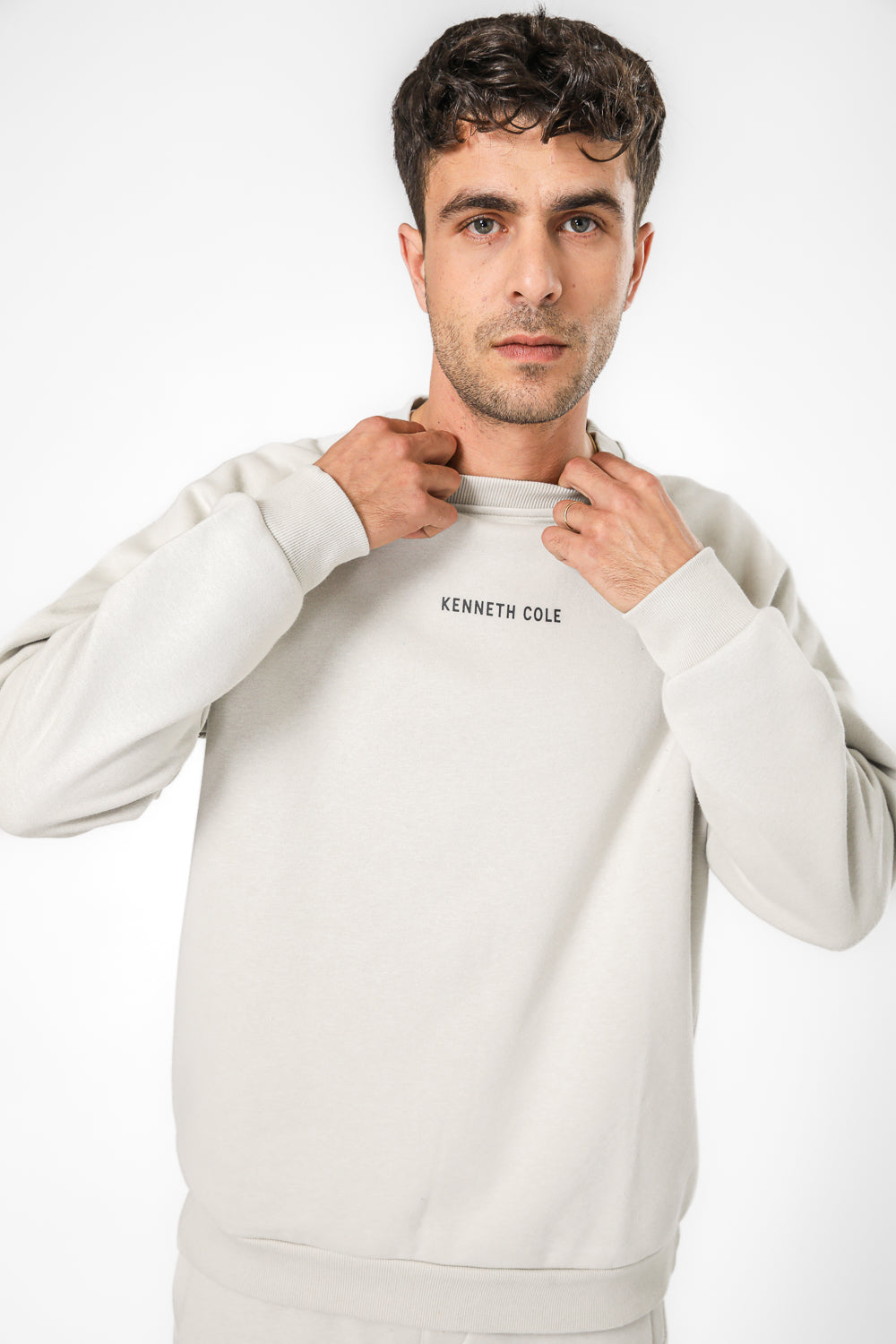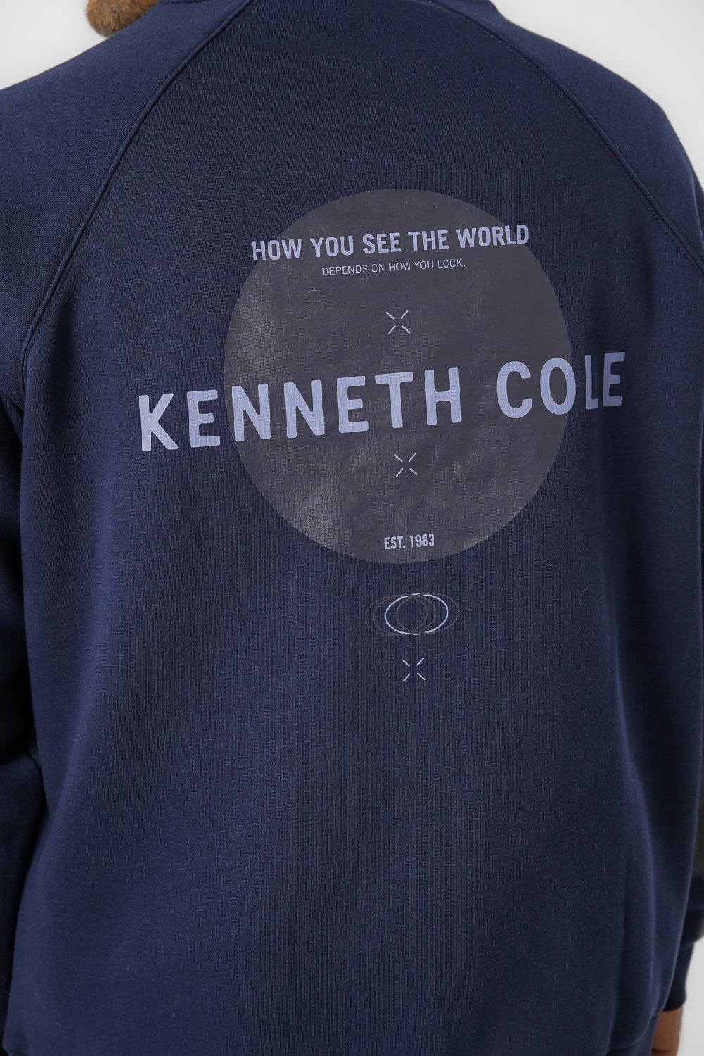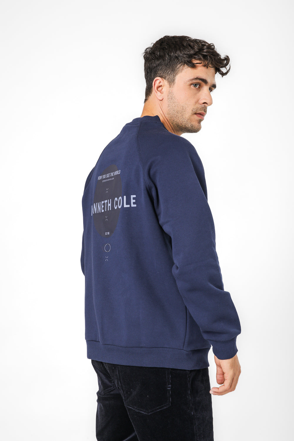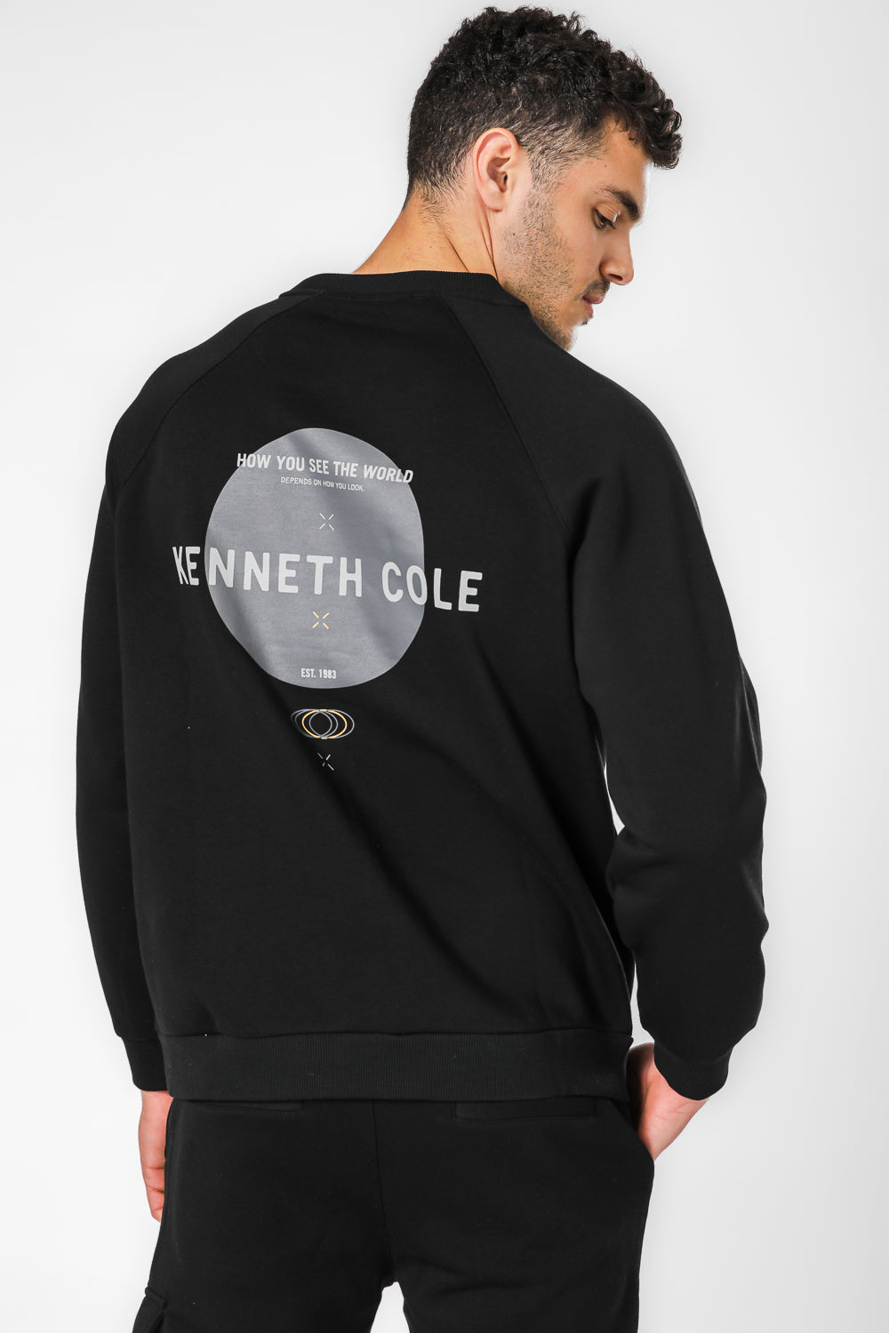 סווטשירט רגלן לגברים מבית המותג KENNETH COLE בגזרת אוברסייז עם הדפס בגב ולוגו בחזית, בעל שרוולים ארוכים וצווארון עגול.