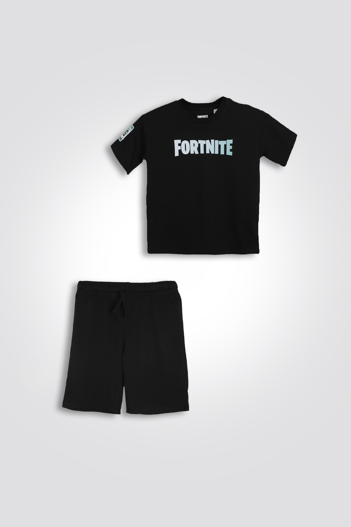 סט פיג'מת קיץ לילדים מבית המותג DELTA העשויה מבד נעים עם הדפס של פורטנייט. חולצה עם צווארון עגול ושרוולים קצרים ומכנסיים קצרים תואמים עם גומי במותניים.