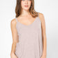 סט נוח לנשים מבית המותג DELTA המעוצבים בטקסטורת ריב נעימה. גופיה בגזרה משוחררת, מחשוף וי וכתפיות דקות ומכנסיים ארוכים בגזרה נינוחה עם גומי במותניים, שרוכי קשירה וכיסים.