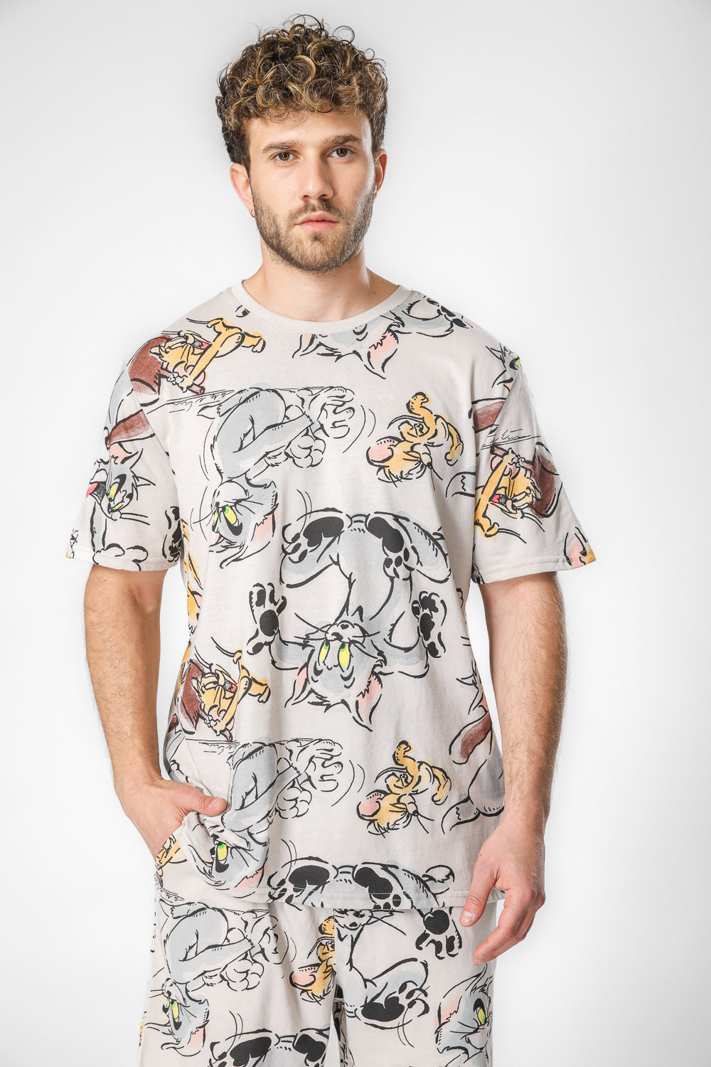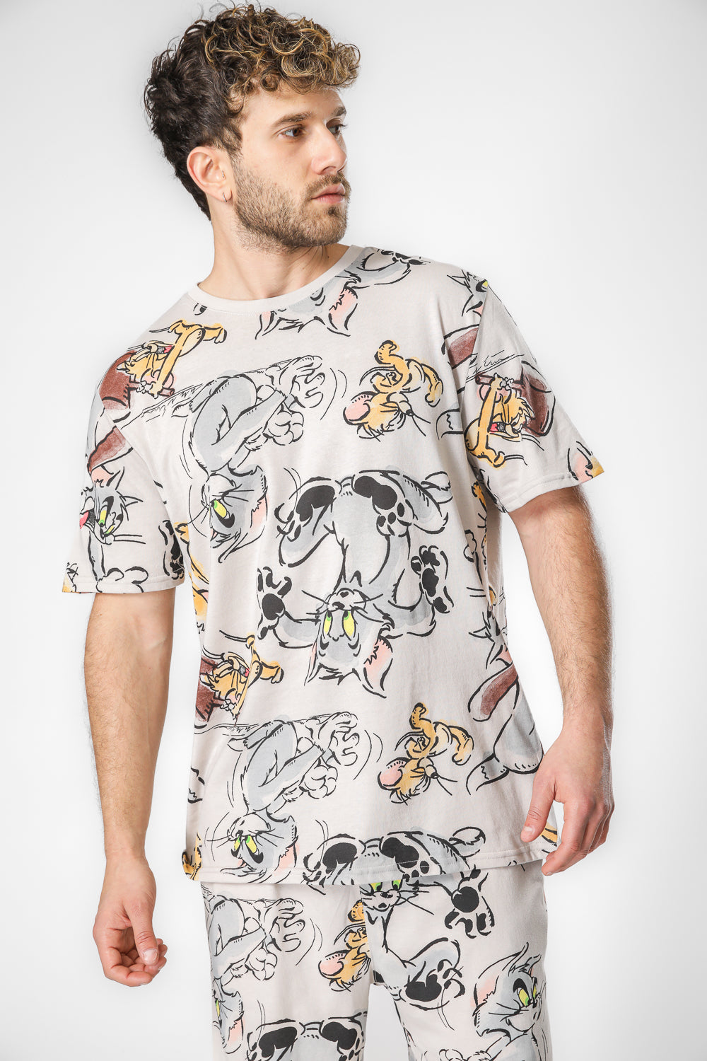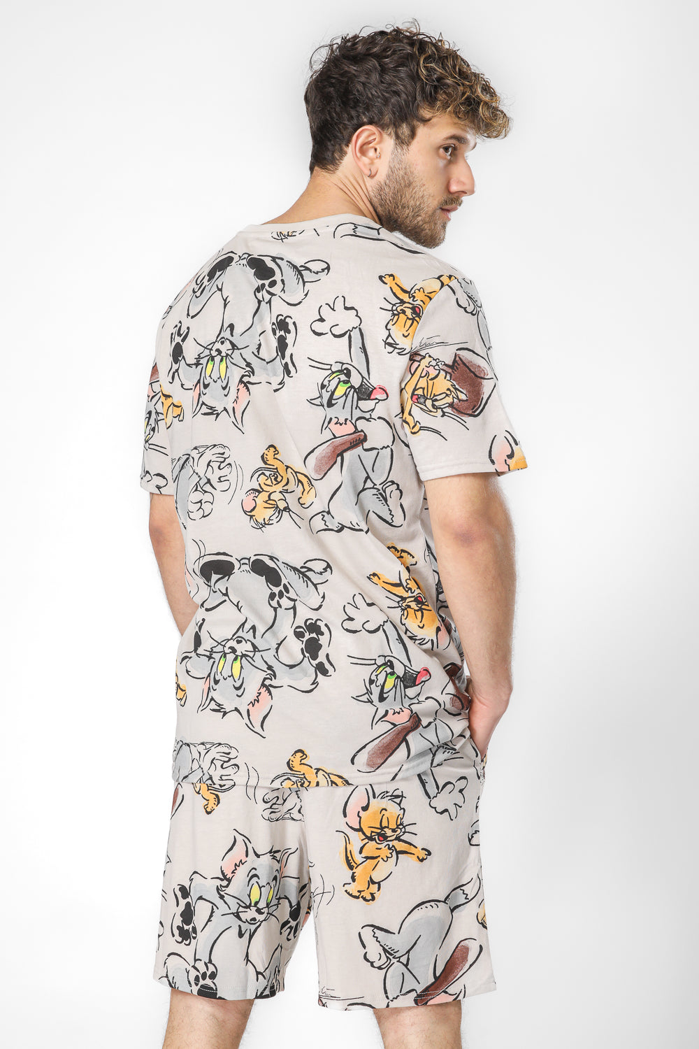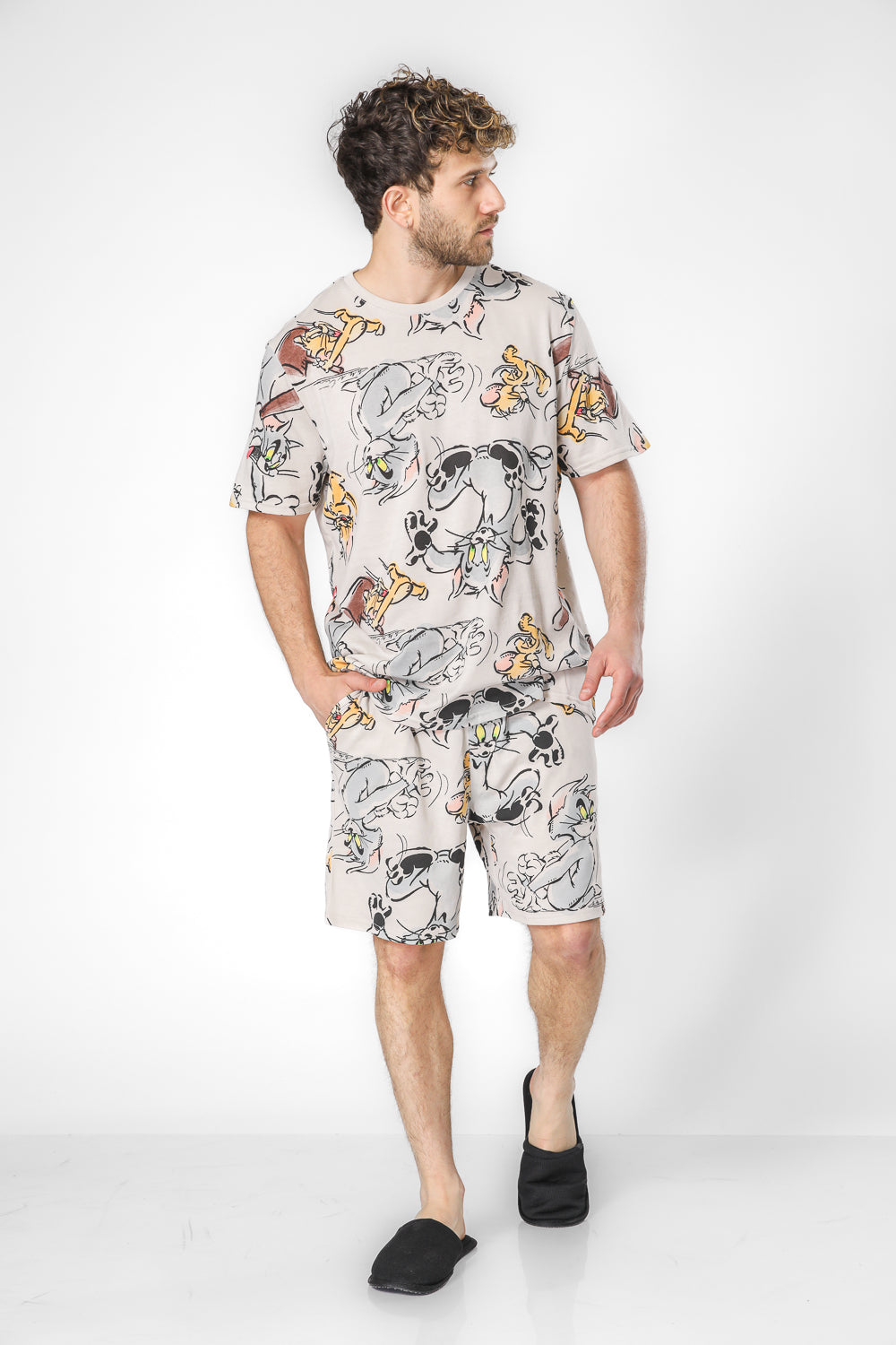סט פיג’מה יוניסקס קצרה מבית המותג DELTA העשויה בד קליל ונעים עם הדפסים של טום וג’רי. חולצה עם צווארון עגול ושרוולים קצרים, ומכנסיים קצרים עם גומי במותניים, שרוכי קשירה וכיסים בצדדים לנוחות מירבית.