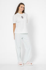 סט פיג'מת מעבר מבית המותג DELTA העשויה מבד סינגל ג’רסי קליל עם הדפס של מיני מאוס. חולצה עם צווארון עגול ושרוולים קצרים ומכנסיים ארוכים עם גומי במותניים.