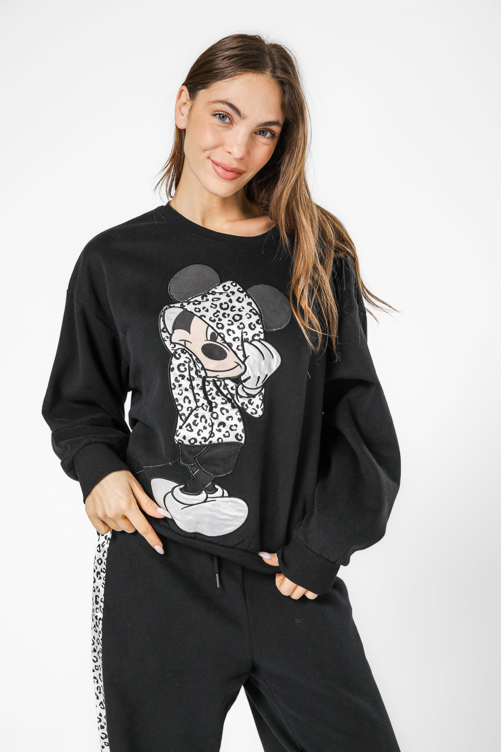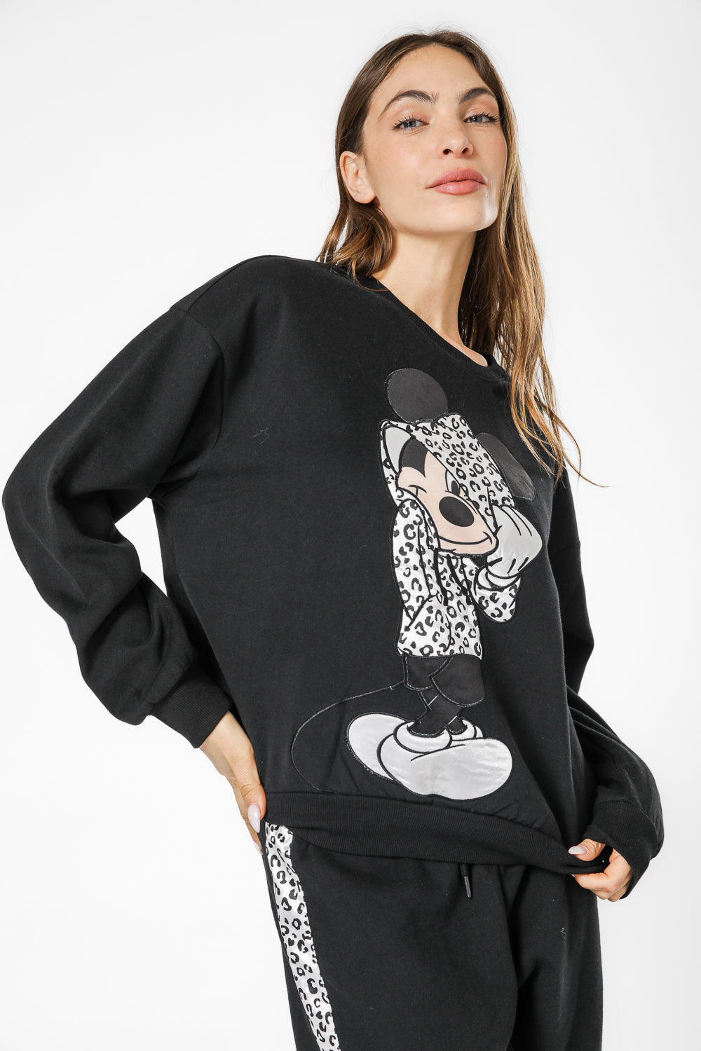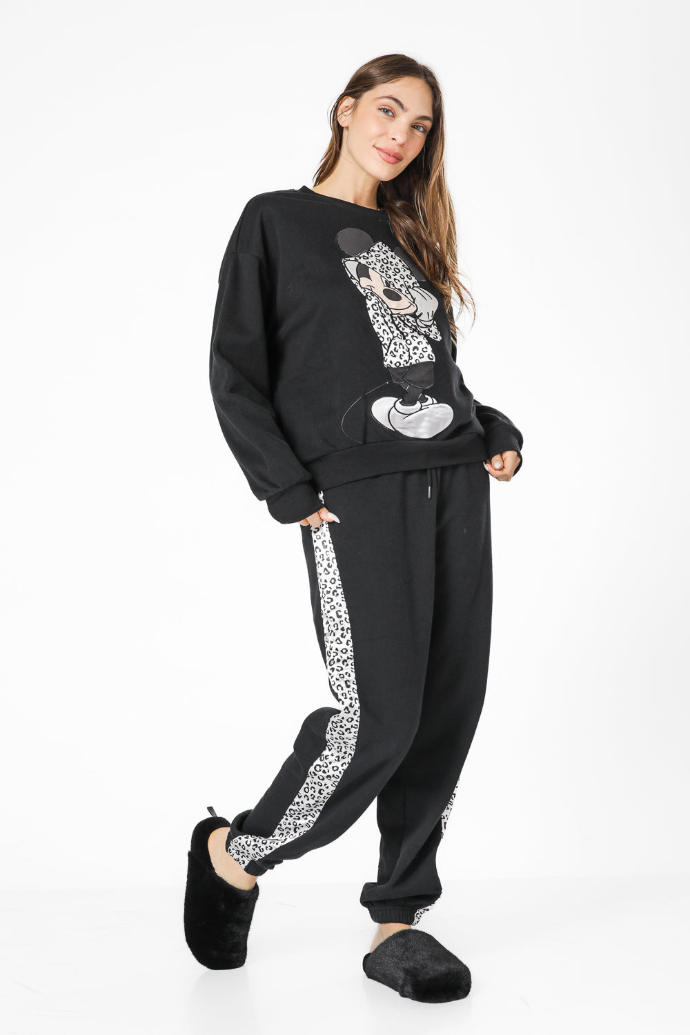 סט פיג'מה לנשים מבית המותג DELTA העשויה מבד פוטר רך ומחמם במוטיב מיקי מאוס. חולצה עם צווארון עגול, שרוולים ארוכים וסיומת מנג’ט ומכנסיים ארוכים עם סיומת מנג’ט.