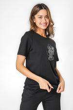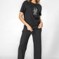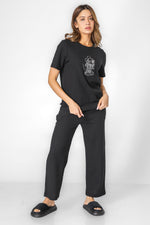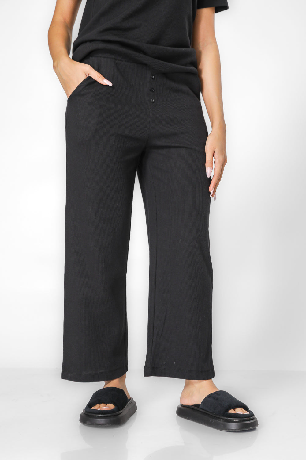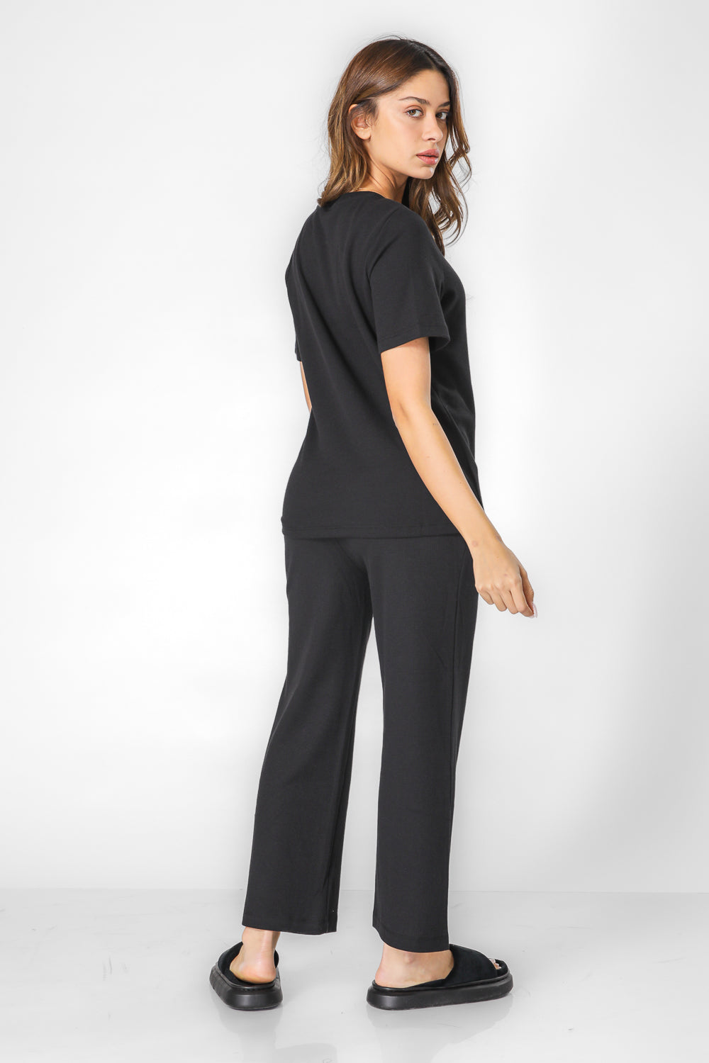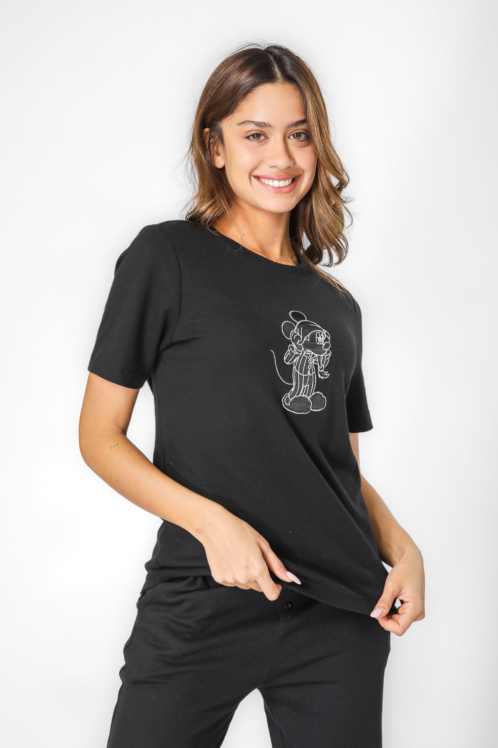 סט פיג’מה וופל באורך 7/8 MICKEY בצבע שחור