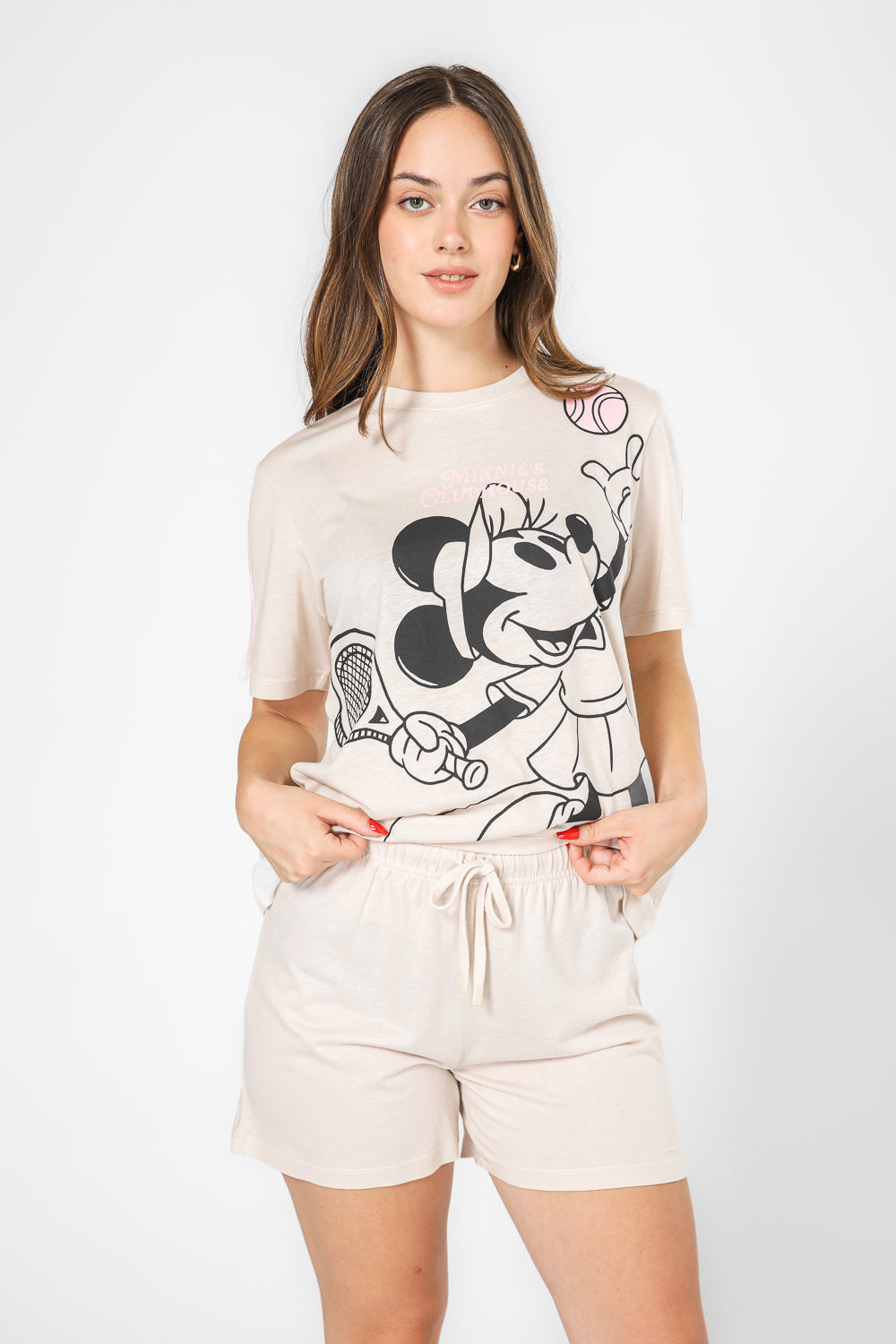 סט פיג'מה קצרה מבית המותג DELTA בשילוב הדפס של מיני מאוס הכולל חולצה עם צווארון עגול ושרוולים קצרים ומכנסיים קצרים תואמים עם גומי במותניים ושרוכי קשירה. חפשו את הדגם התואם לכל המשפחה!