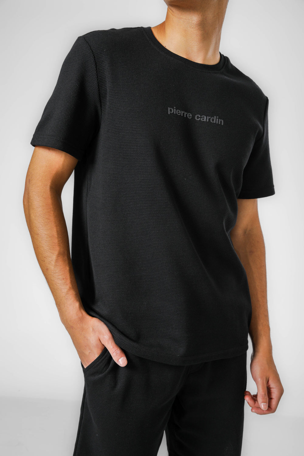 סט פנאי קצר וופל PIERRE CARDIN בצבע שחור