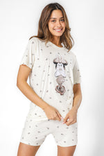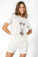 סט פיג'מת קיץ מבית המותג DELTA העשויה מבד דק ונעים עם הדפס של מיני מאוס. חולצה עם מפתח צוואר עגול ושרוולים קצרים ומכנסיים קצרים תואמים עם גומי במותניים ושרוכי קשירה.