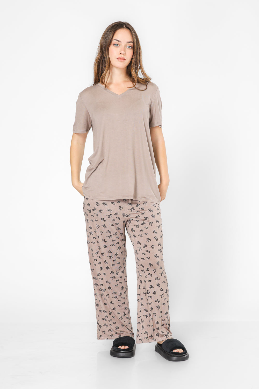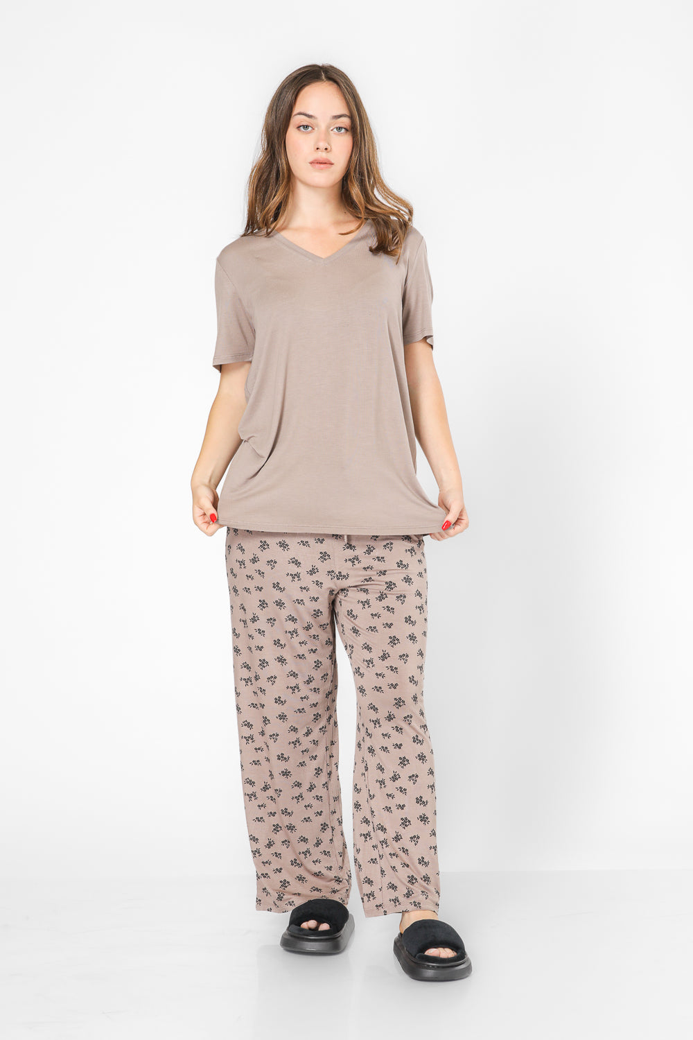 סט פיג'מת מעבר מבית המותג DELTA העשויה מבד דק ונעים במוטיב פרחוני. חולצה בגזרה משוחררת עם מפתח צוואר וי ושרוולים קצרים ומכנסיים בגזרה נינוחה באורך 7/8 עם גומי במותניים ושרוכי קשירה.