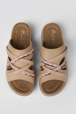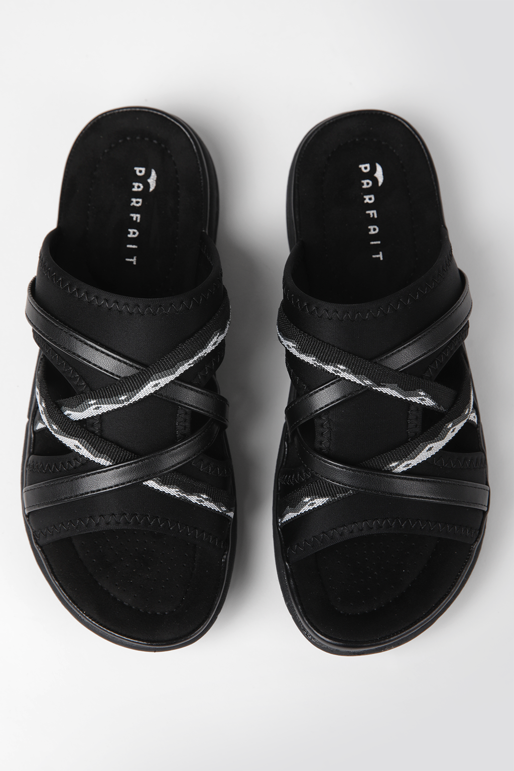 כפכפי נוחות לנשים מבית המותג PARFAIT, בעלי רצועה קדמית בשילוב רצועות דקות מוצלבות, סוליה פנימית מרופדת וסוליית גומי חיצונית.