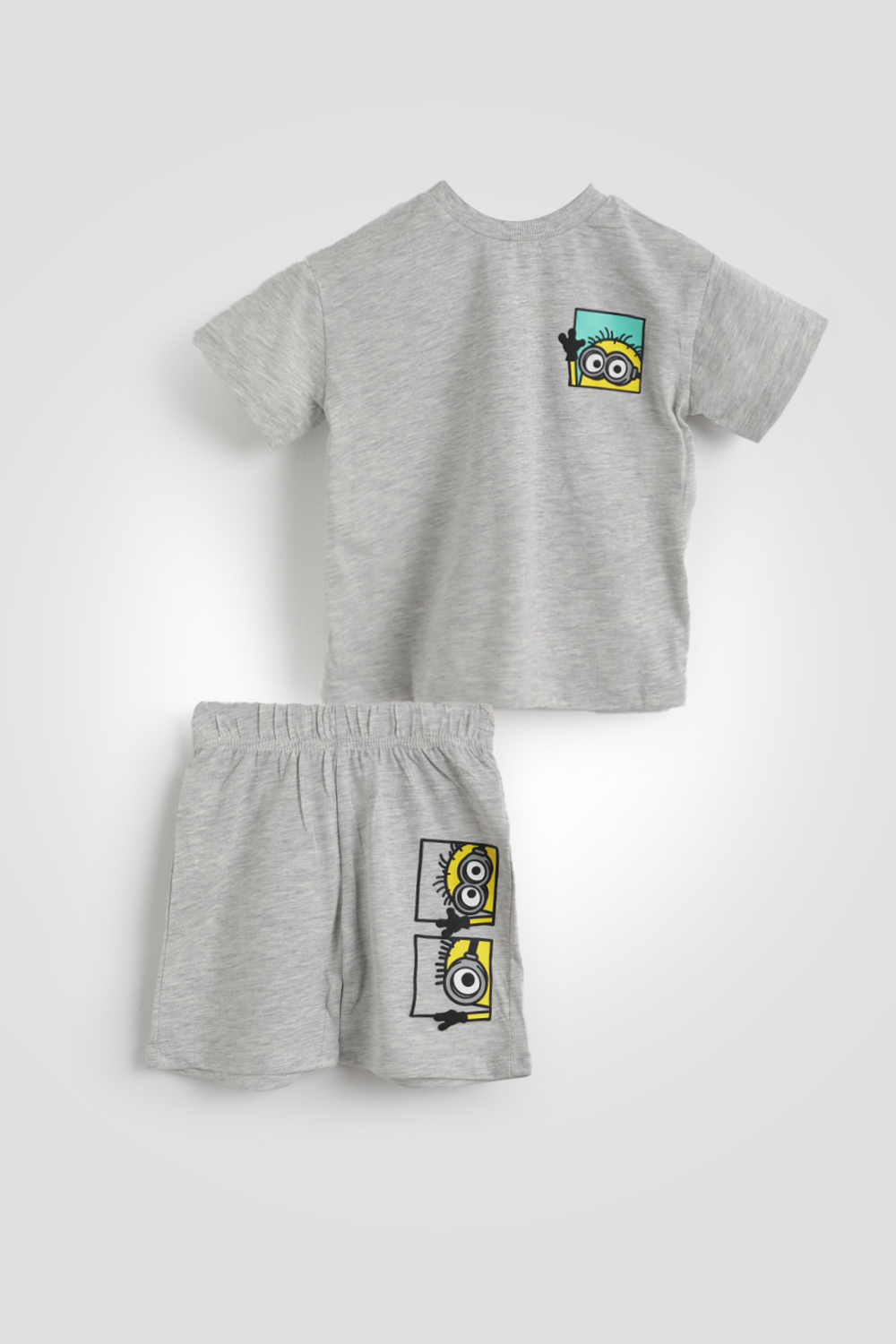 סט פיג'מה קצרה מבית המותג DELTA העשויה מבד דק ונעים בהדפס של המיניונים. חולצה עם צווארון עגול ושרוולים קצרים ומכנסיים קצרים תואמים עם גומי במותניים.
