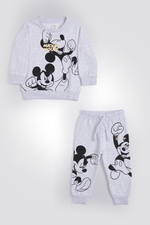 סט פיג’מה לילדים מביתה המותג DELTA העשויה מבד פוטר רך ומחמם עם הדפסים של מיקי מאוס. חולצה עם צווארון עגול ושרוולים ארוכים עם סיומת מנג’ט ומכנסיים ארוכים עם גומי במותניים וסיומת מנג’ט.