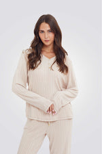 פיג'מת מעבר מבית המותג BONITA DE MAS העשויה בד ויסקוזה רך ונעים.