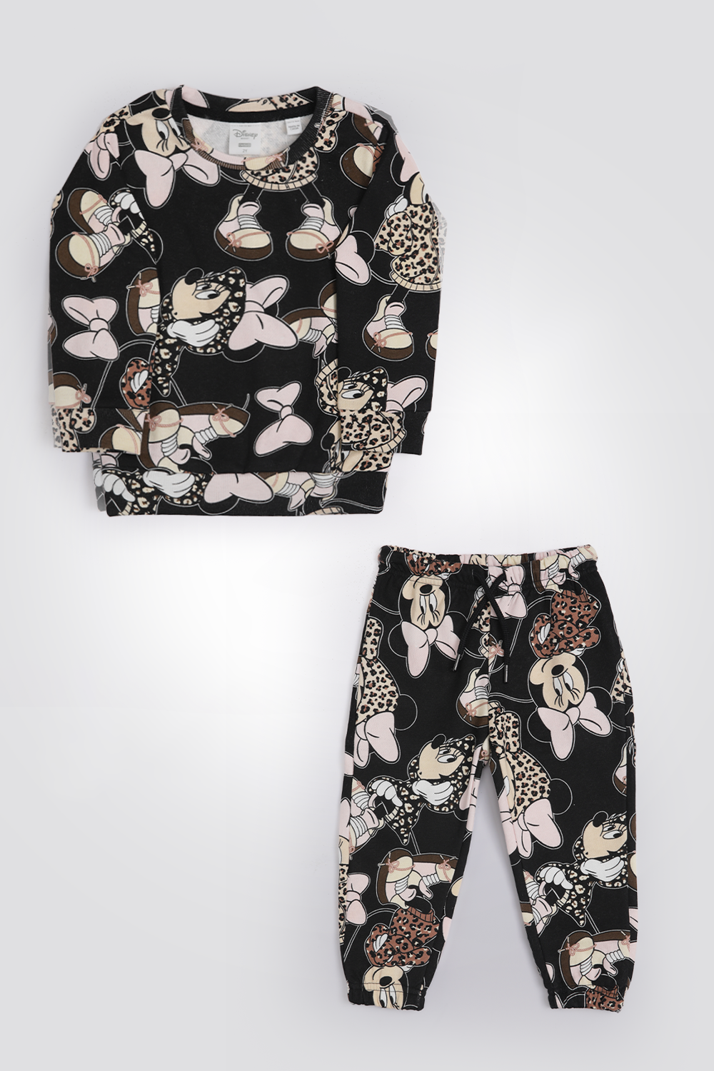 סט פיג’מה לנערות מבית המותג DELTA העשויה מבד פוטר רך ומחמם עם הדפסים מתוקים של מיני מאוס. חולצה עם צווארון עגול, שרוולים ארוכים וסיומת מנג’ט ומכנסיים ארוכים עם גומי במותניים וסיומת מנג’ט.