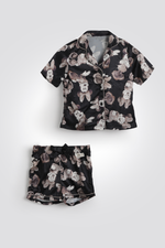 סט פיג’מת קיץ מבית המותג DELTA העשויה מבד סאטן נעים במיוחד בהדפס מתוק של מיני מאוס. חולצה מכופתרת עם צווארון משולשים ושרוולים קצרים, ומכנסיים קצרים עם גומי במותניים ושרוכי קשירה.