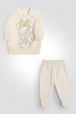 סט פיג’מת חורף לתינוקות מבית המותג DELTA העשויה מבד פוטר רך ומחמם עם הדפס של מיקי מאוס. חולצה עם צווארון עגול, שרוולים ארוכים וסיומת מנג’ט ומכנסיים ארוכים עם גומי במותניים וסיומת מנג’ט. במידות NB ו-0-3 חודשים המכנסיים עם רגליות.