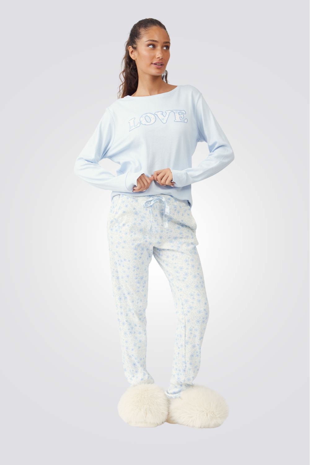 סט פיג'מה לנשים מבית המותג BONITA DE MAS העשוי מבד כותנה רך ונעים, בעל שרוולים ארוכים, מכנסיים ארוכים תואמים עם כיסים ושרוך קשירה.