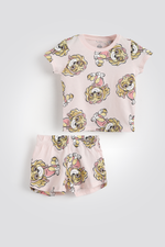 סט פיג’מת קיץ לילדות מבית המותג DELTA העשויה מבד דק ונעים בהדפס מתוק של מפרץ ההרפתקאות. חולצה עם צווארון עגול, שרוולים קצרים ומכנסיים קצרים תואמים עם גומי במותניים.