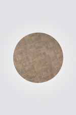 פלייסמט עגול מבית המותג ASHRAM, דגם אבלין, המוסיף מראה נקי וקלאבסי לשולחן האוכל, ומגן על השולחן מפני חום.