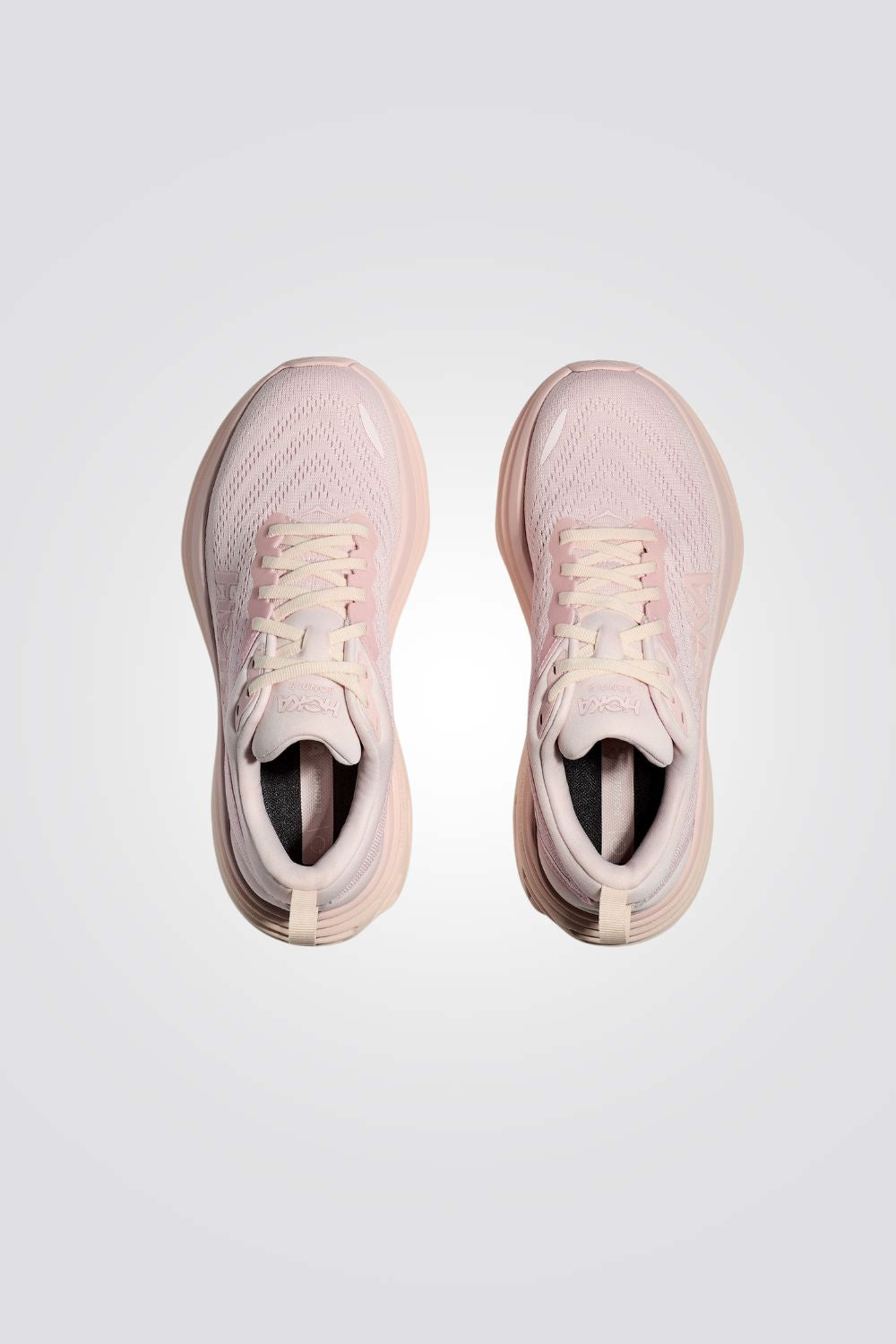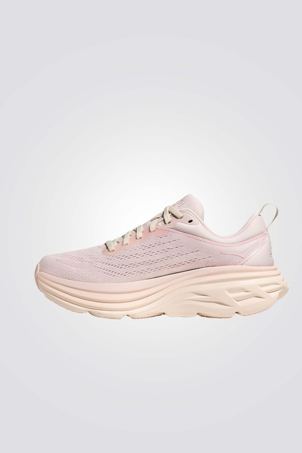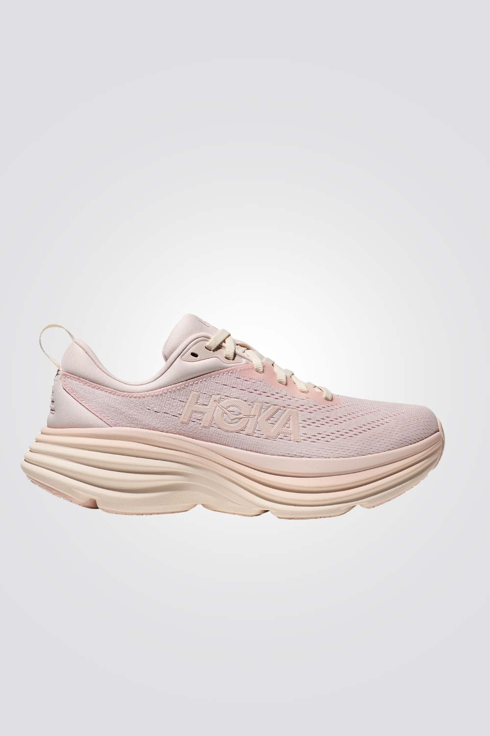 נעלי ספורט מבית המותג HOKA לנשים בצבע ורוד בהיר המציעות שילוב נוחות ועיצוב ייחודי, בעלות גפה רשת לאוורור ותחושבת קלילות וטכנולוגיה מתקדמת המציעה רכות מקסימלית ותמיכה לאורך כל היום.