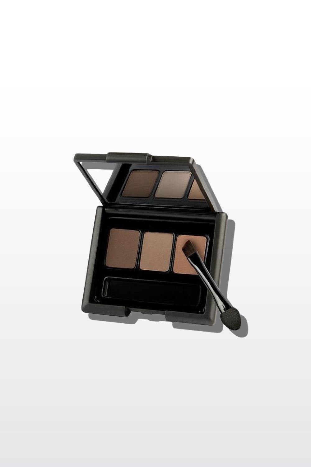 ערכת צלליות קומפקטית הכוללת שלושה גווני בסיס טבעיים לגבות מעוצבות ומוגדרות במראה טבעי ואחיד.