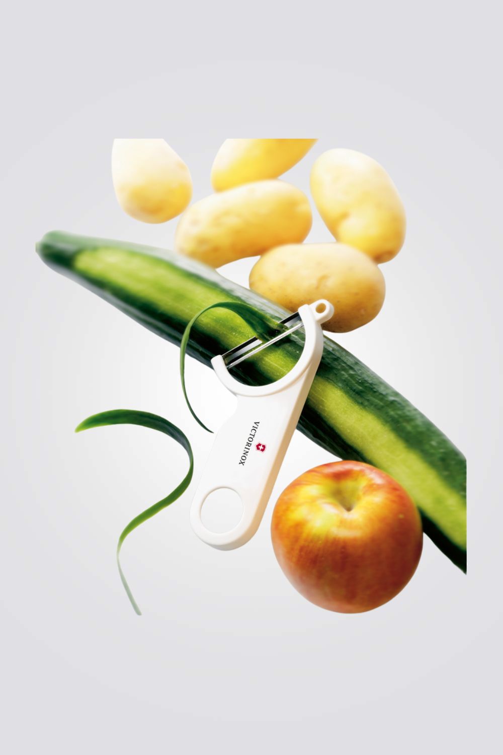 מותאם להסרה של שכבת הקליפה הדקה ביותר מהפרי או הירק, כך שנשאר נפח מקסימלי של חומר הגלם.