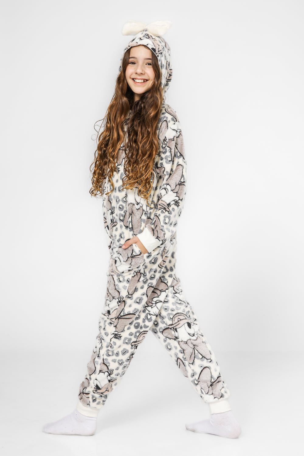 וואנזי מפנק לחורף מבד מיקרופליז מחמם ורך במיוחד במוטיב דייזי. קפוצ’ון מחובר. פתיחה וסגירה נוחה עם רוכסן קדמי וסיומת מנג’ט בידיים וברגליים.