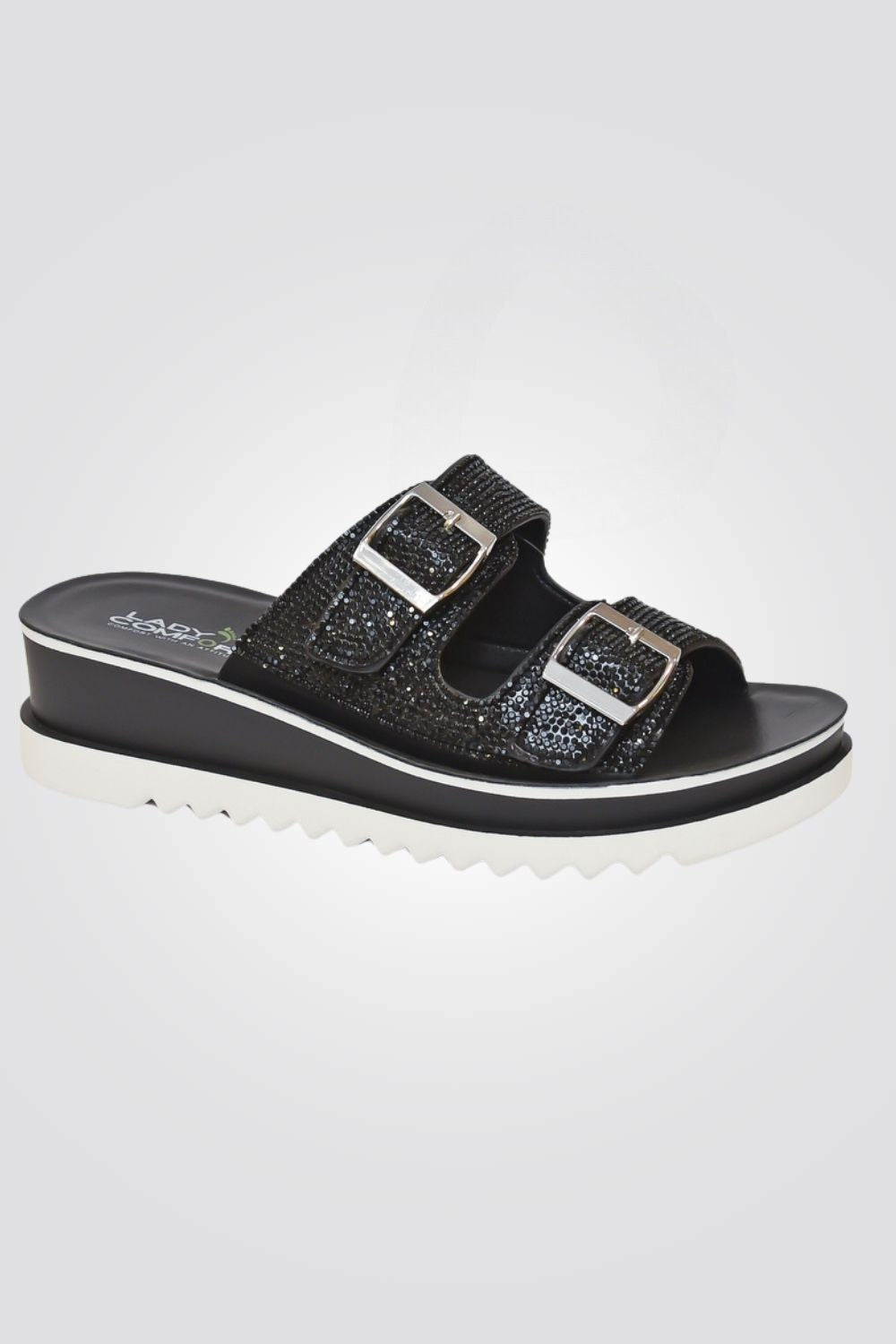 כפכף נוחות לנשים עם אבנים בצבע שחור