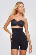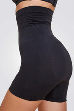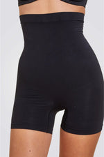 מכנס מחטב בצבע שחור רגל קצרה עם מותן גבוהה
